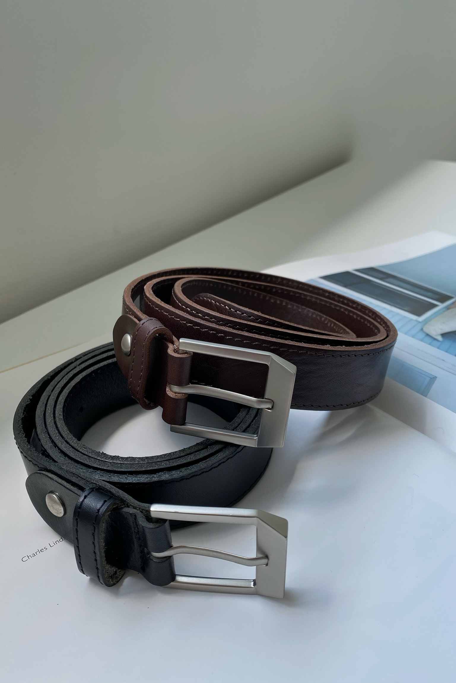 小牛皮方頭皮帶