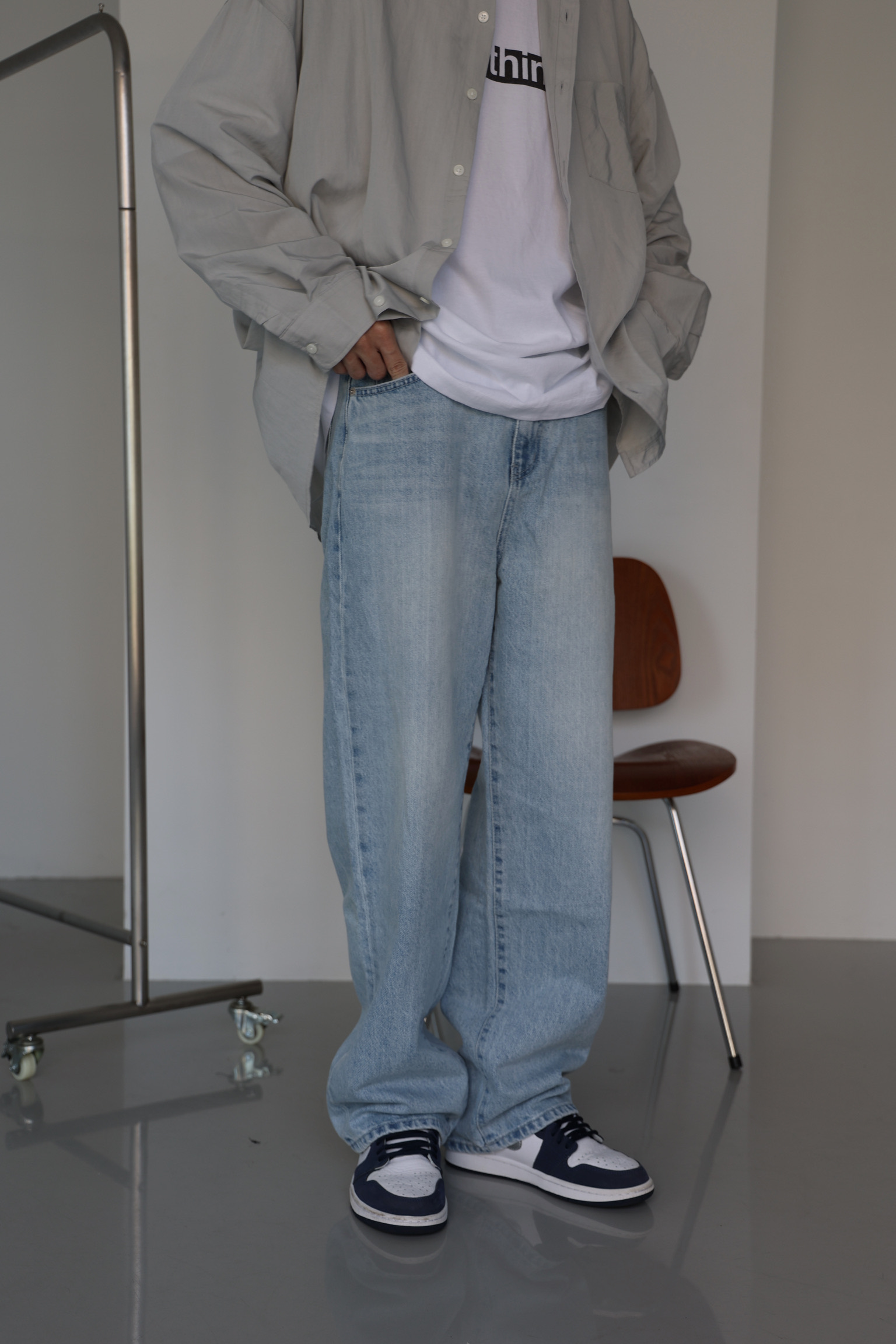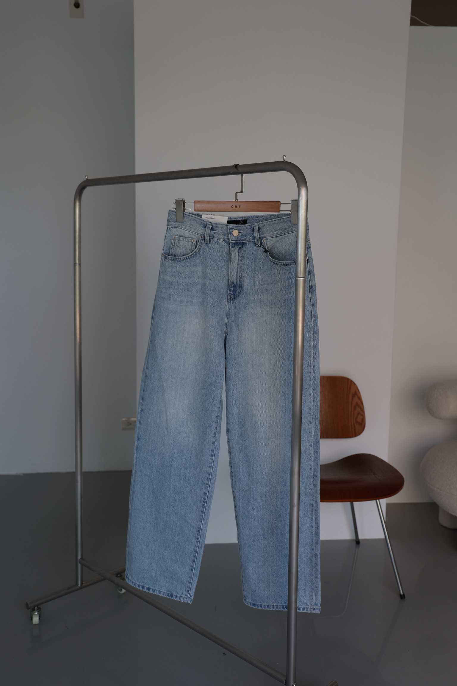 自然刷色牛仔寬褲