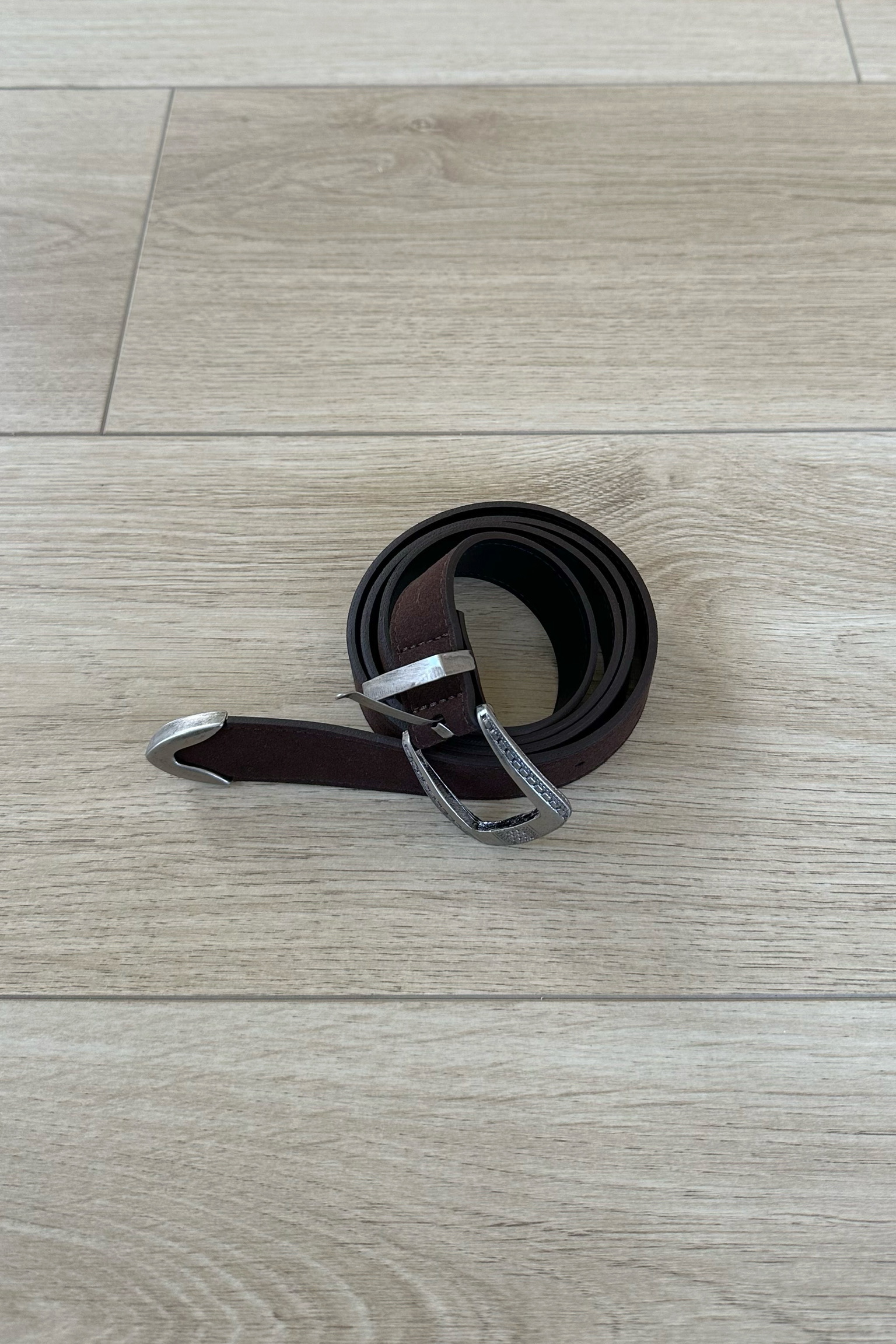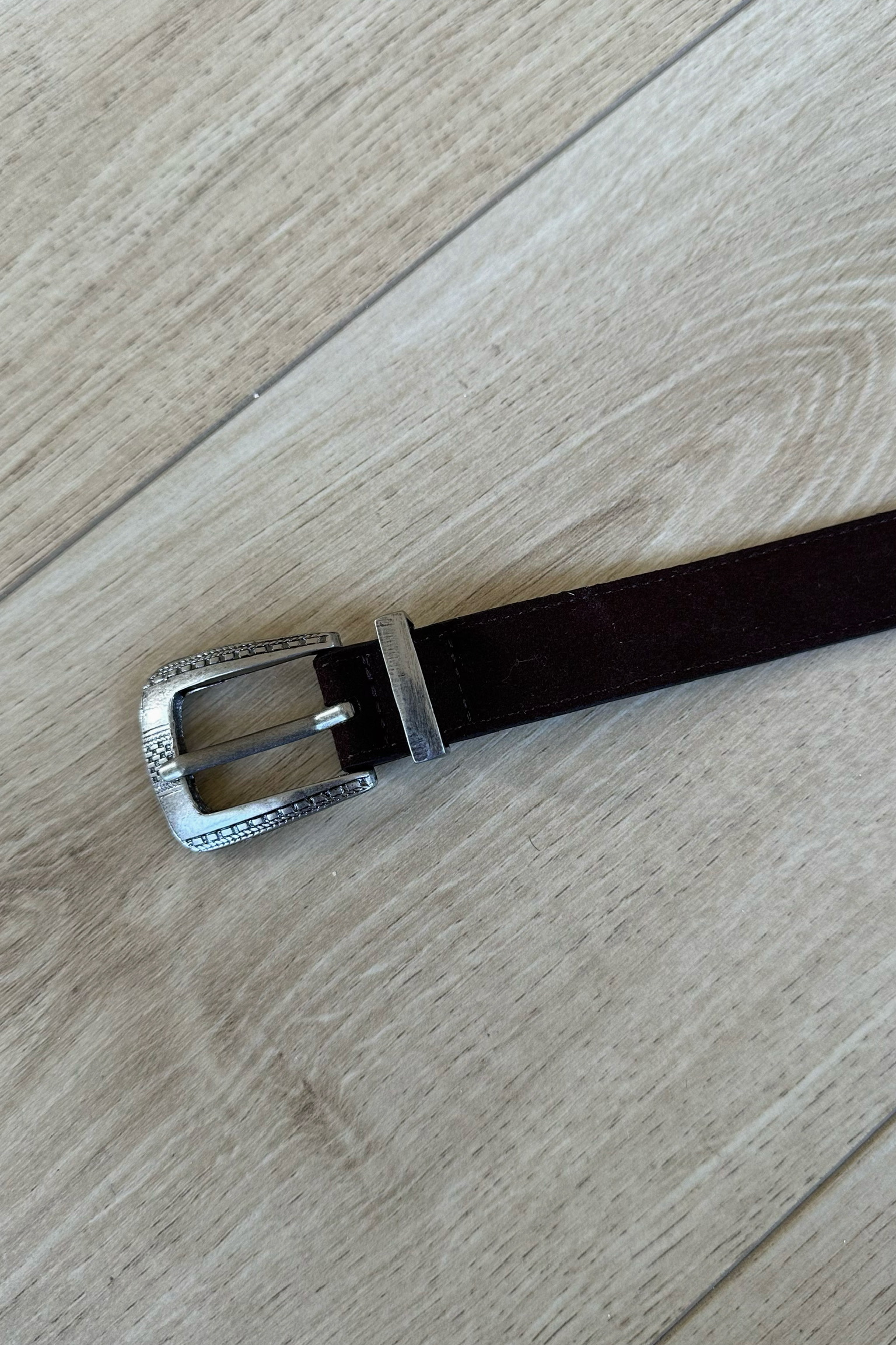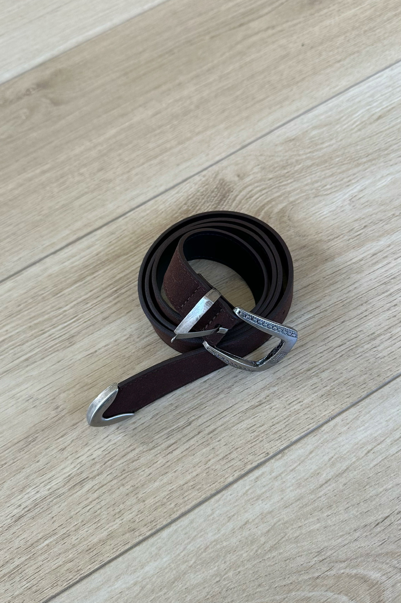 雕花扣環麂皮皮帶