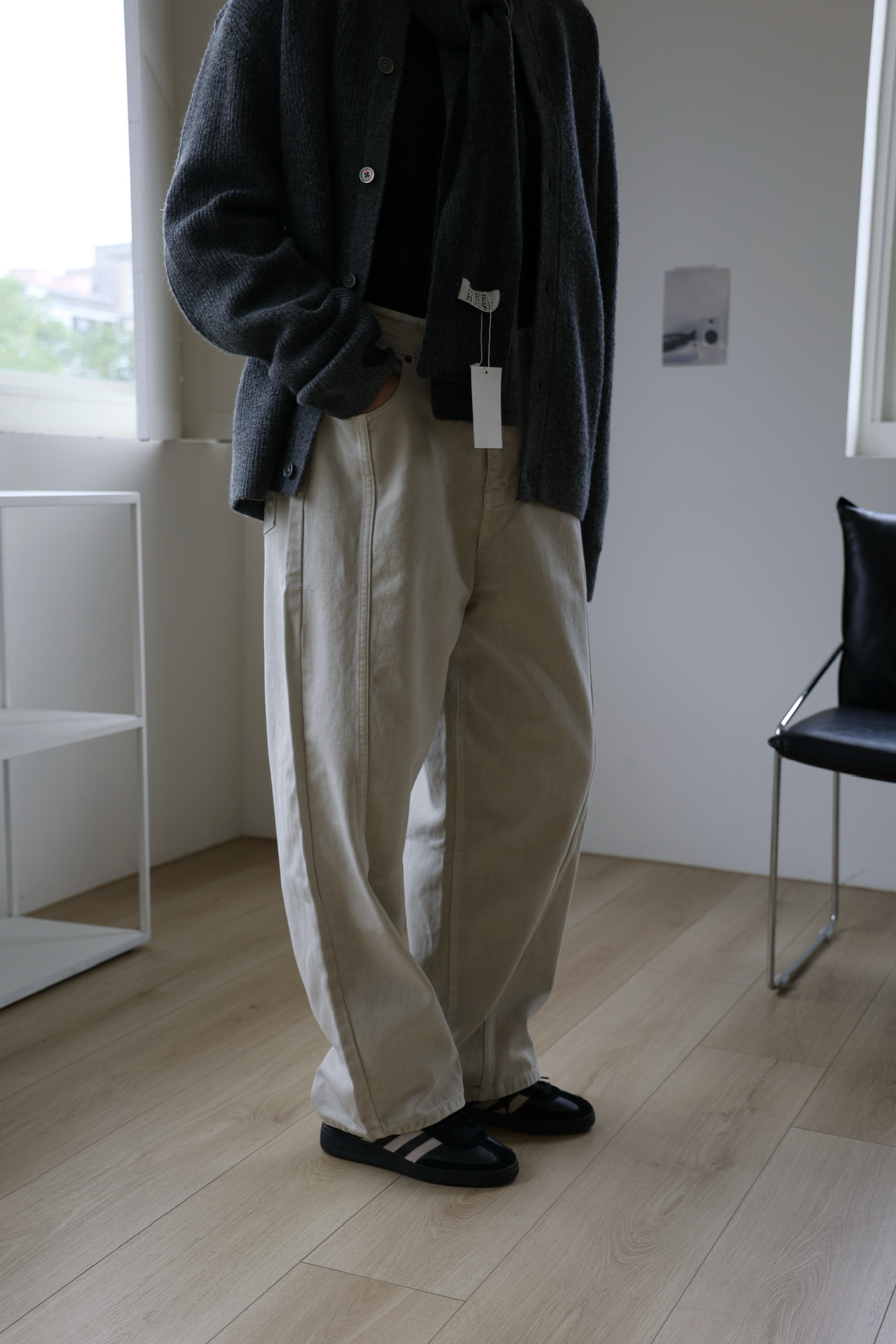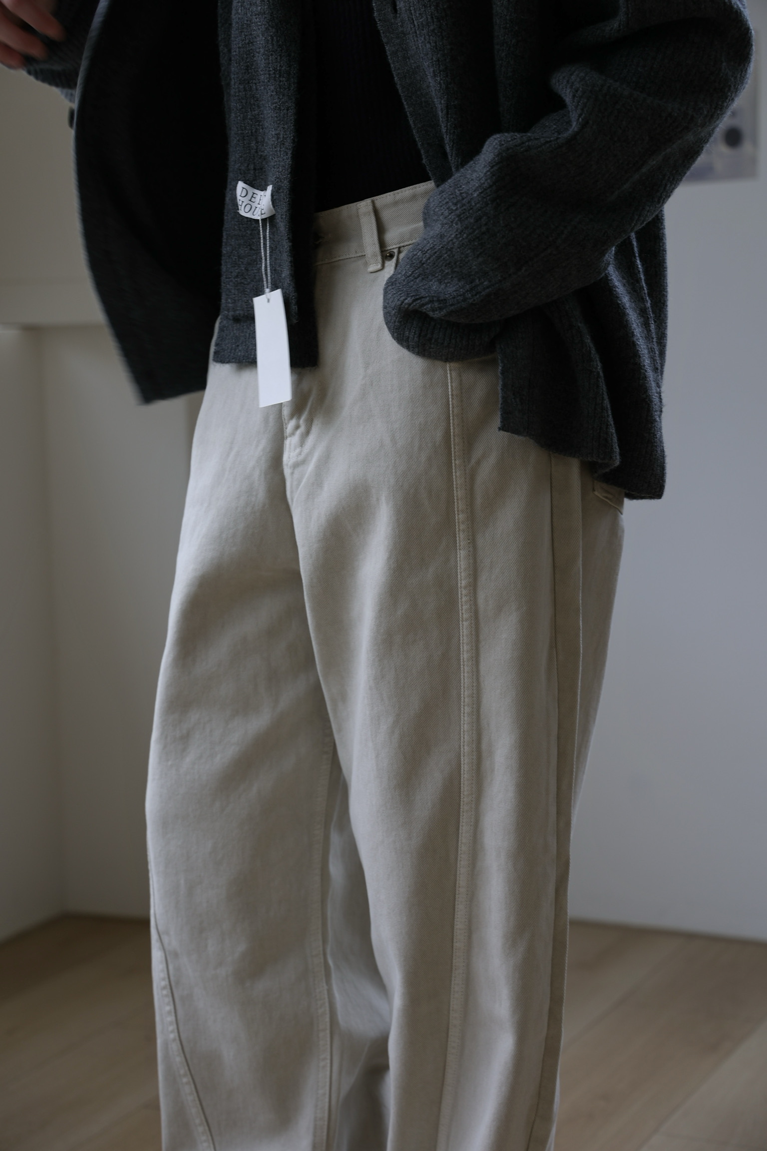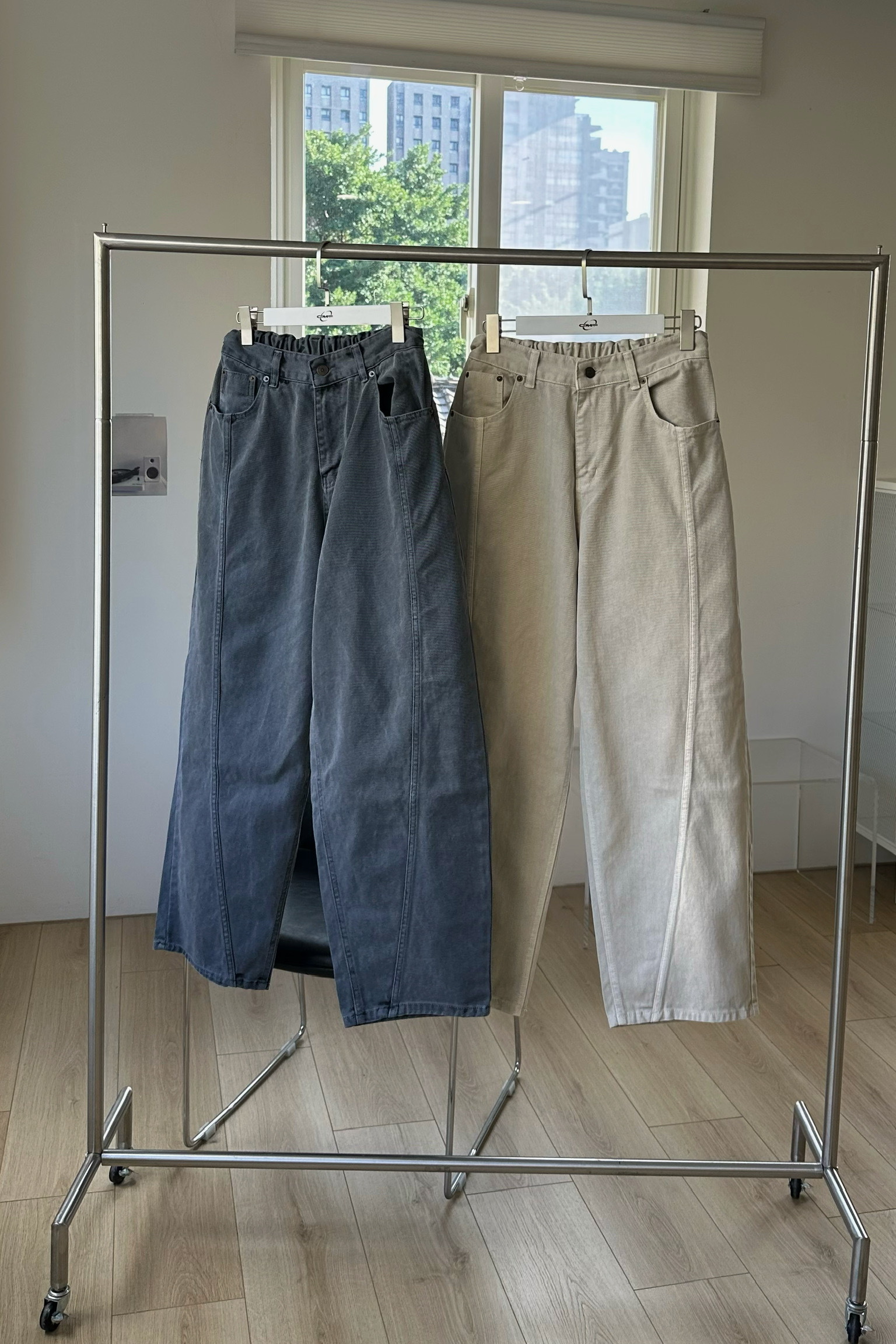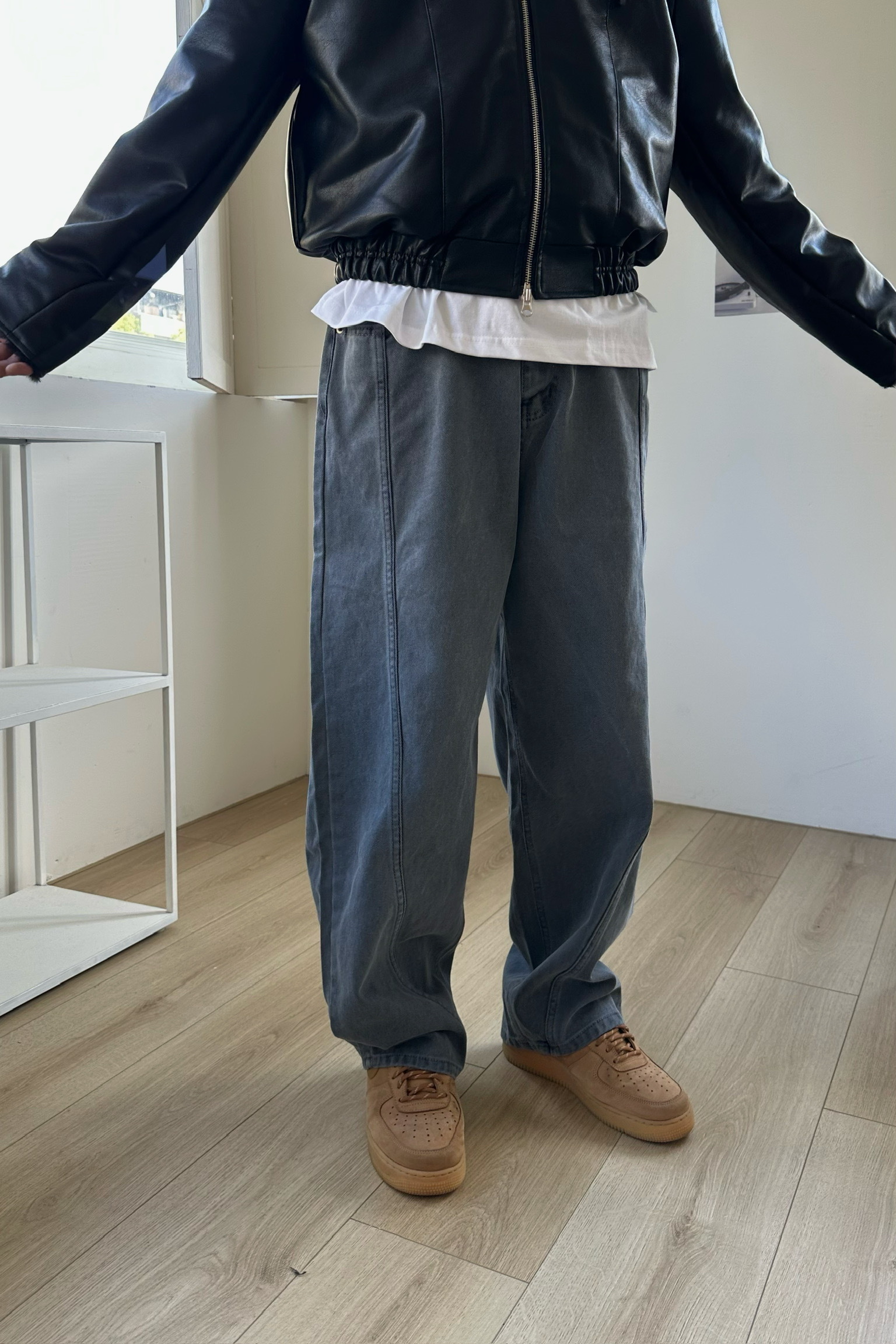 微闊腿版型,弧型簡約拼接