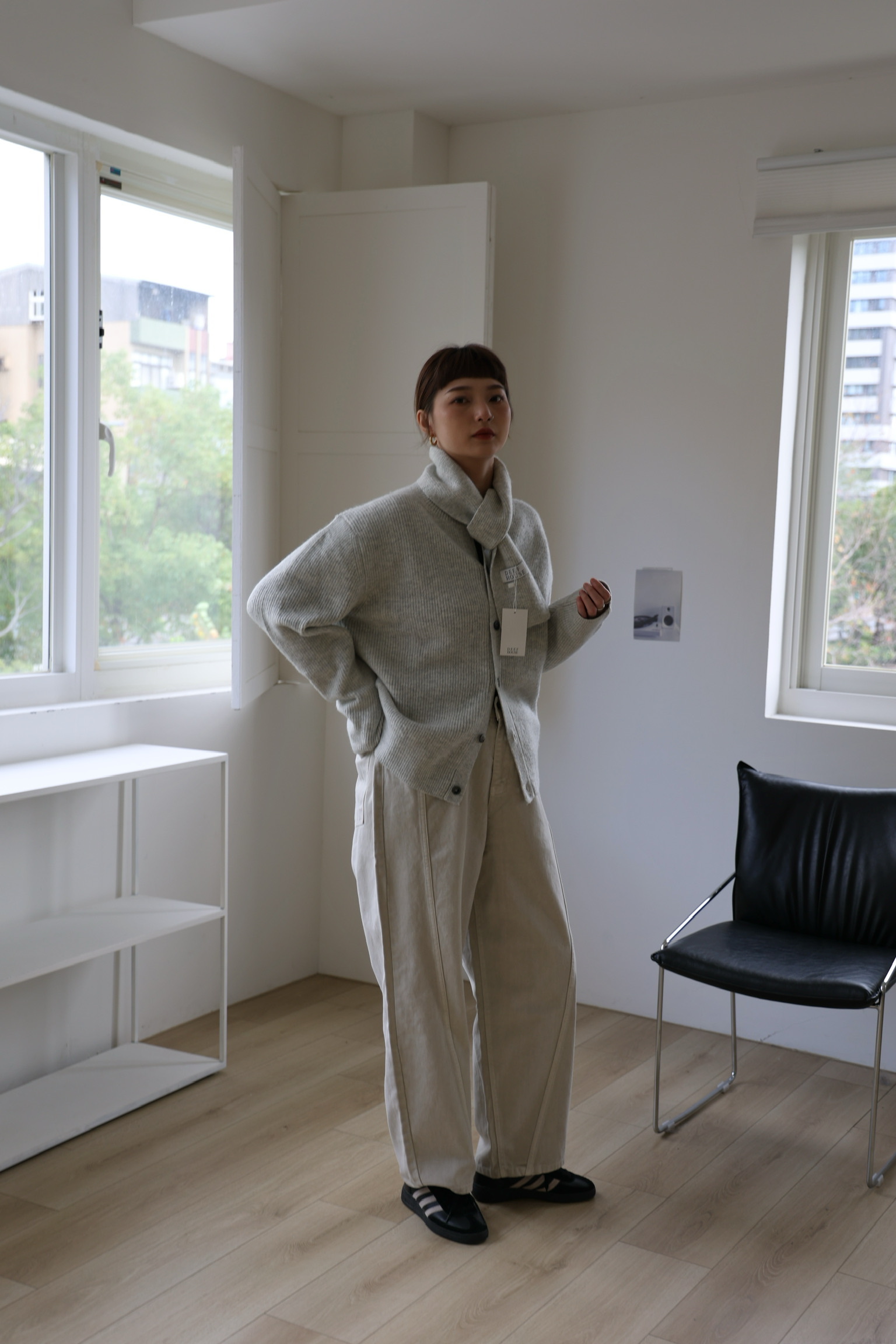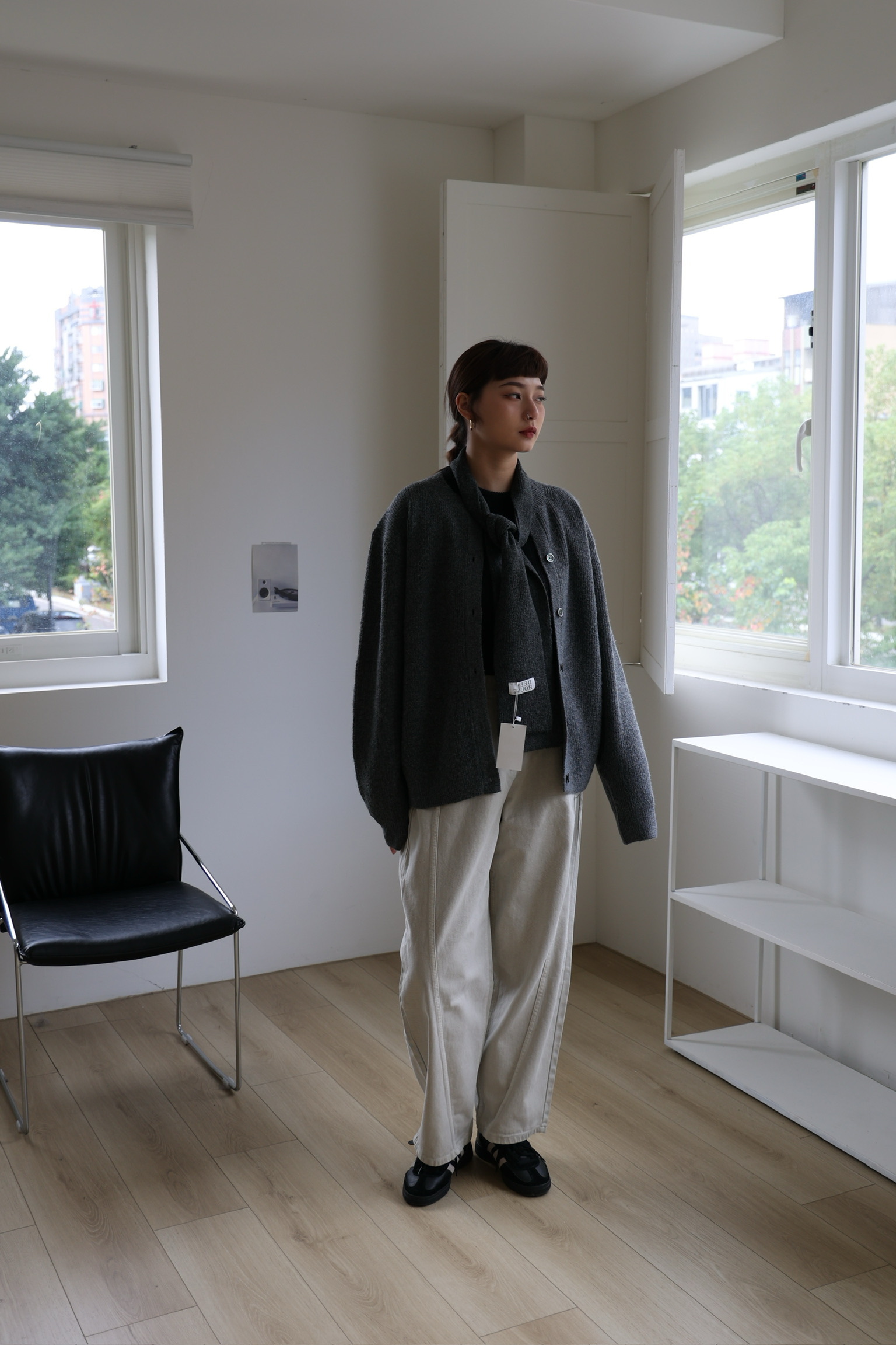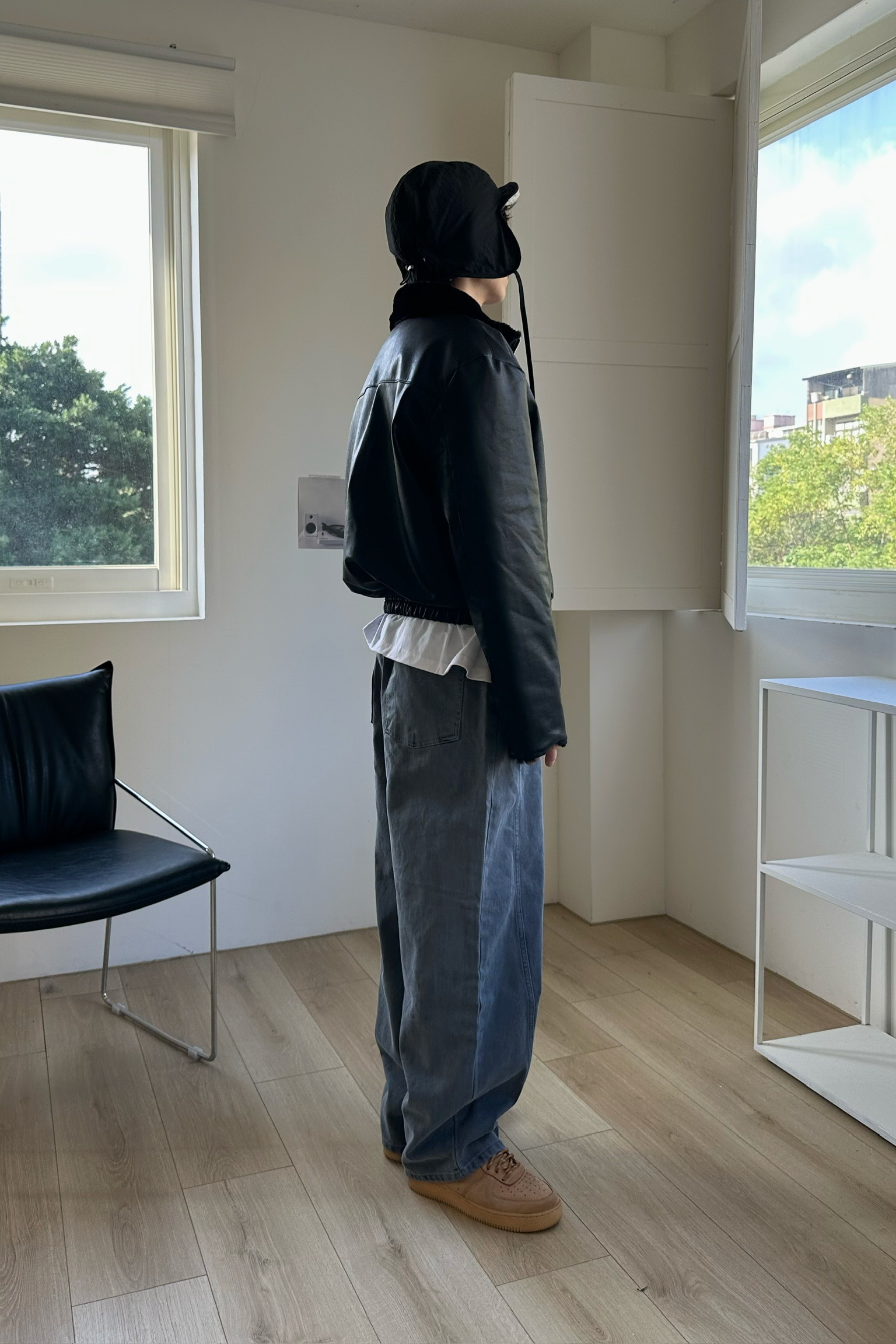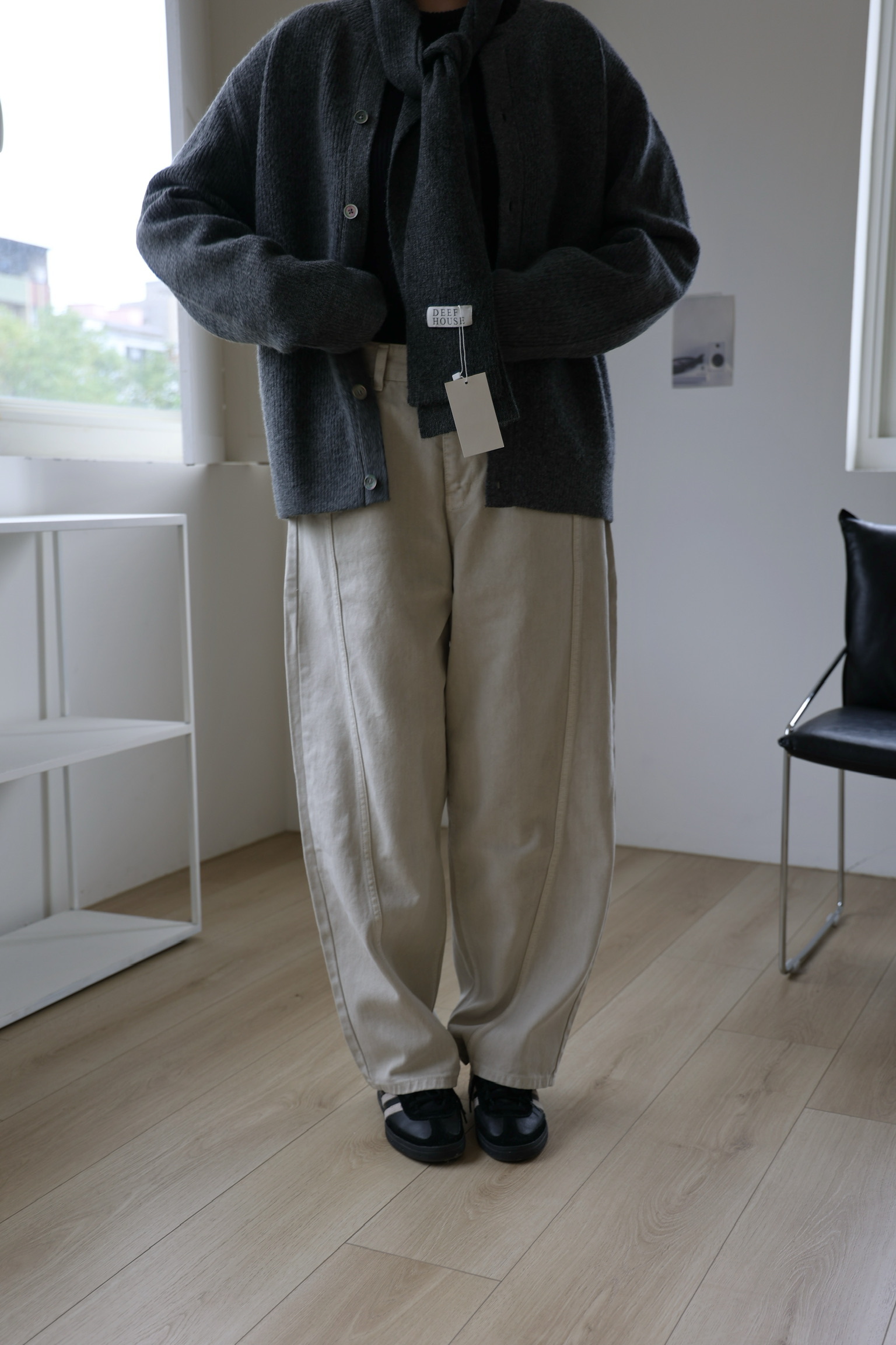 微闊腿版型,弧型簡約拼接