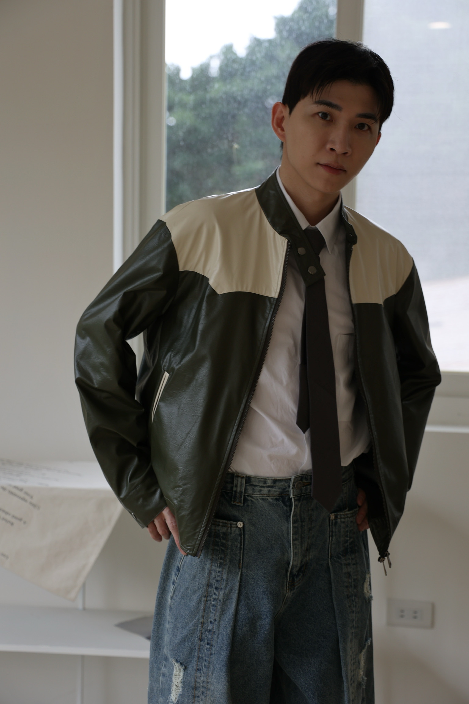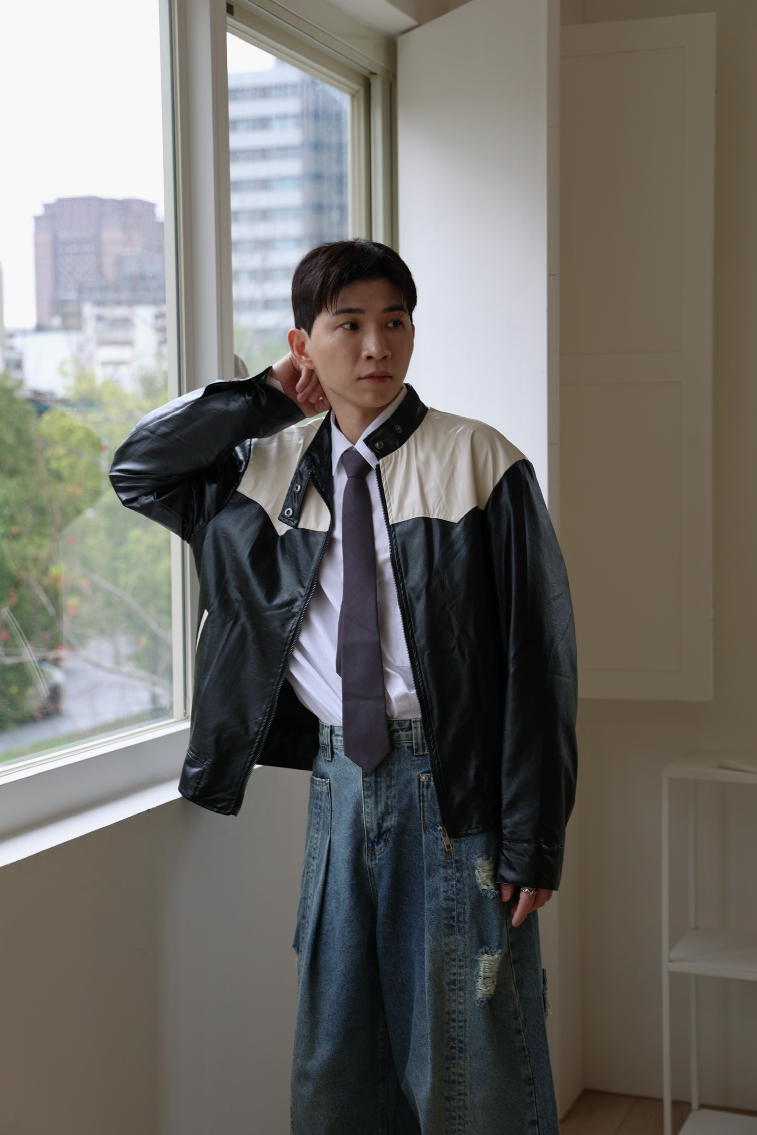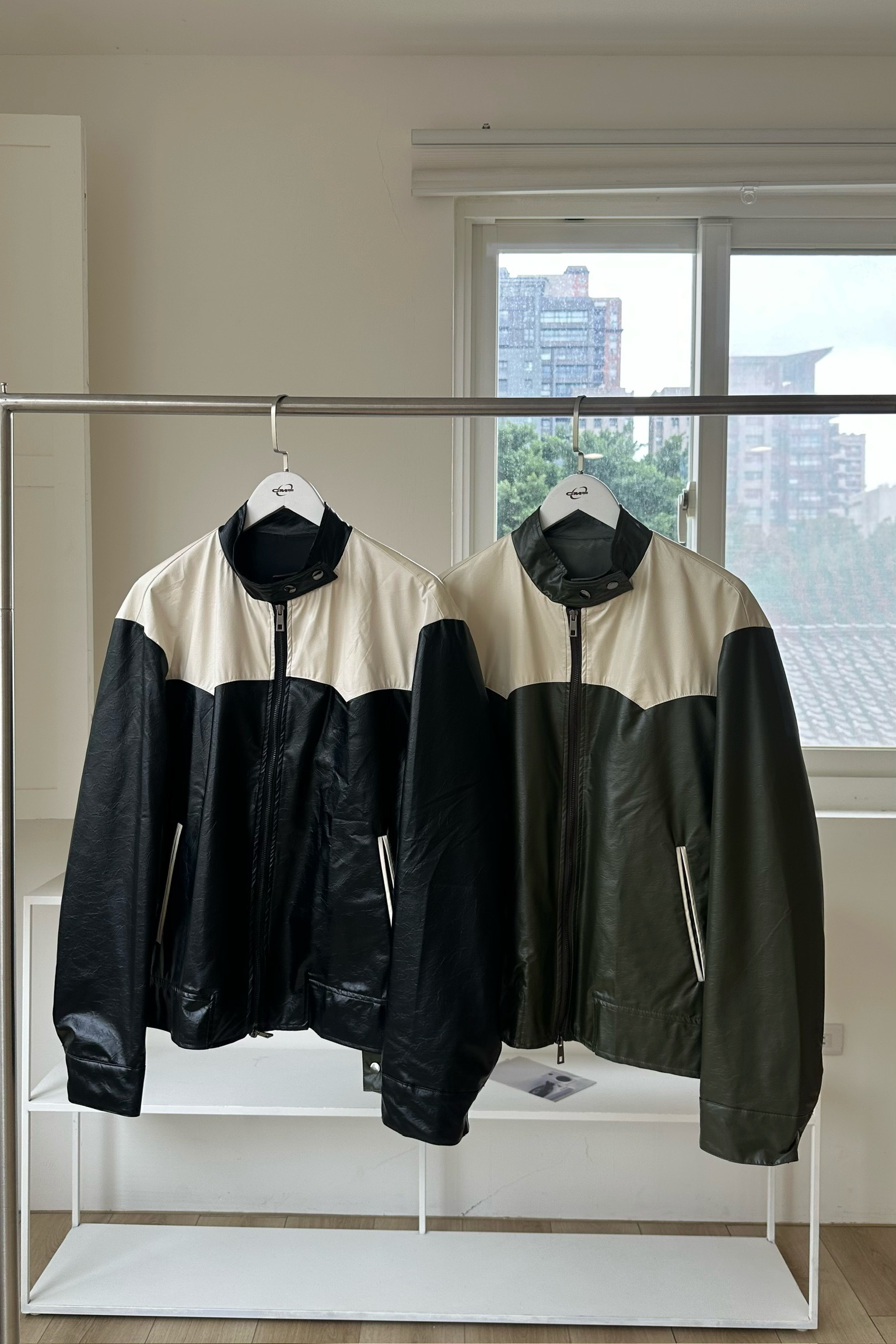 騎士拼色皮外套