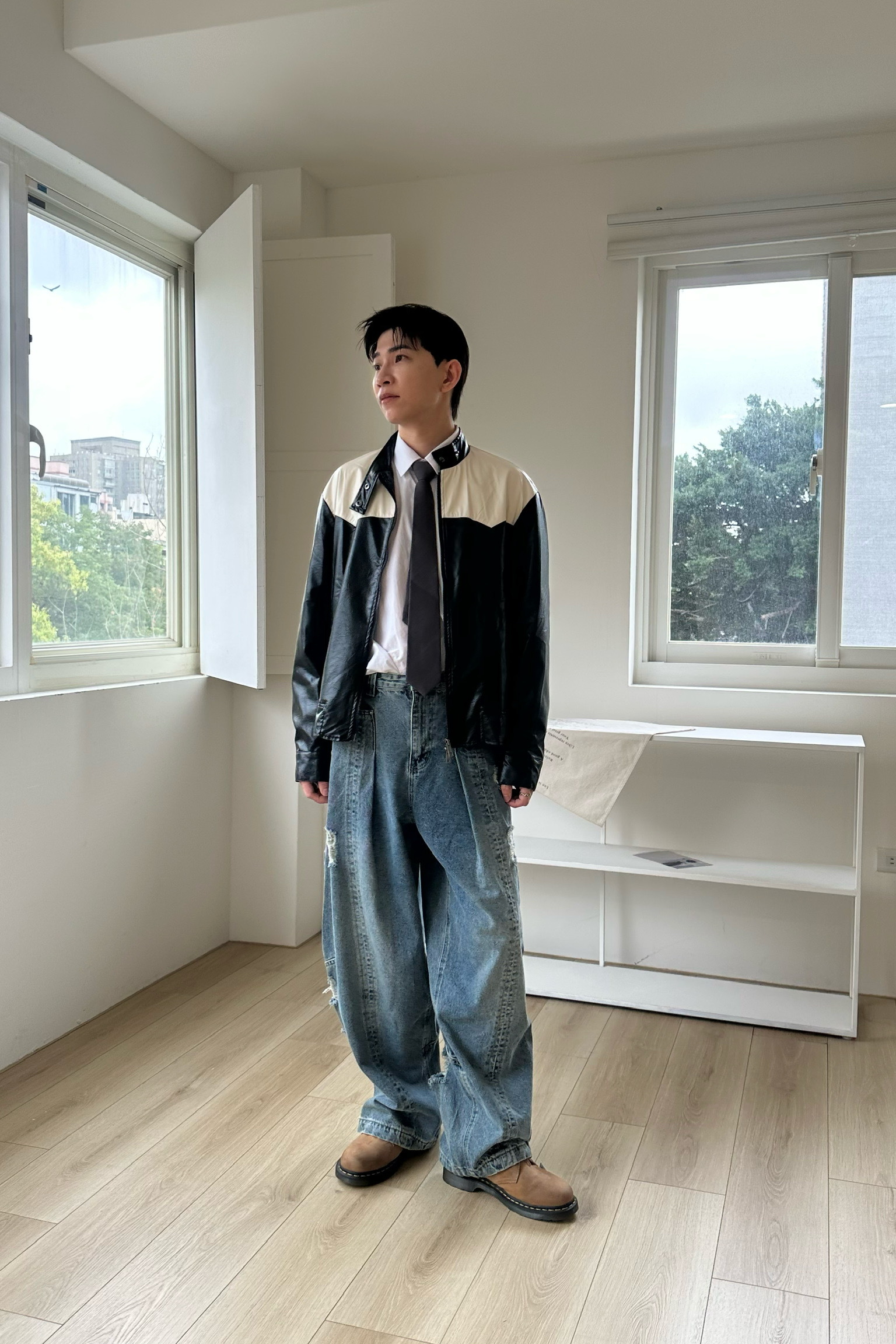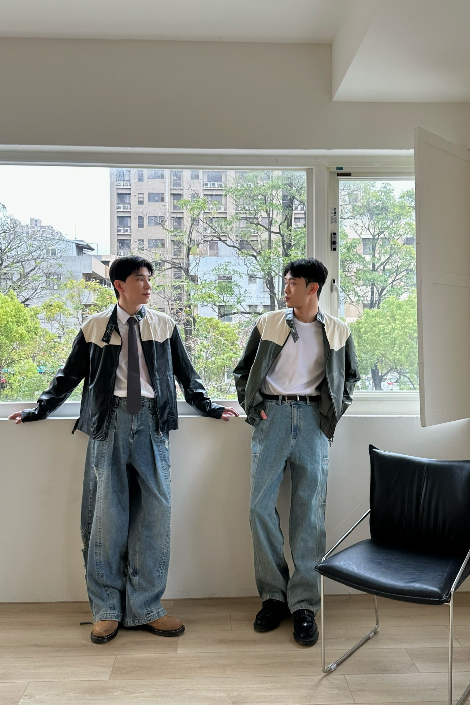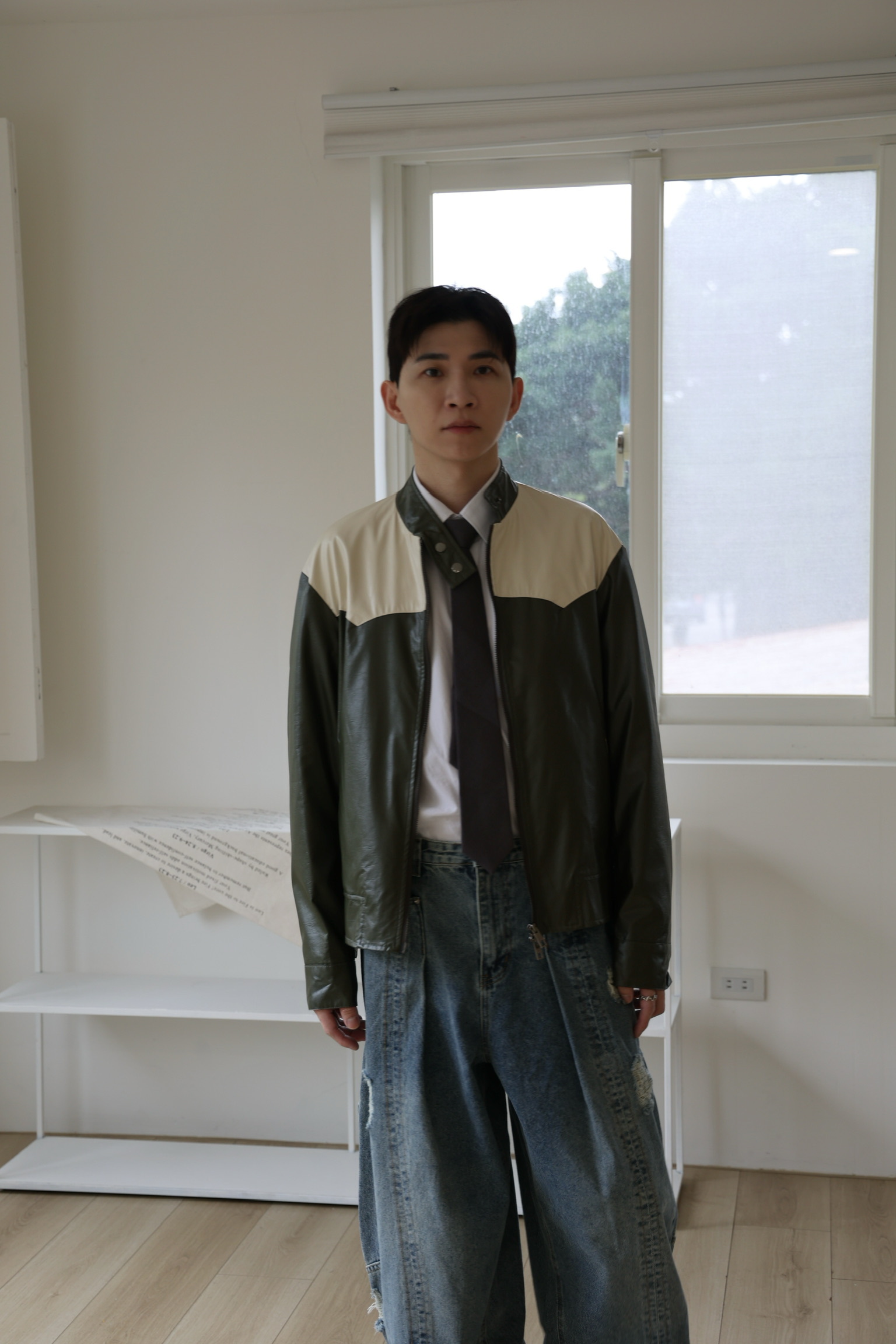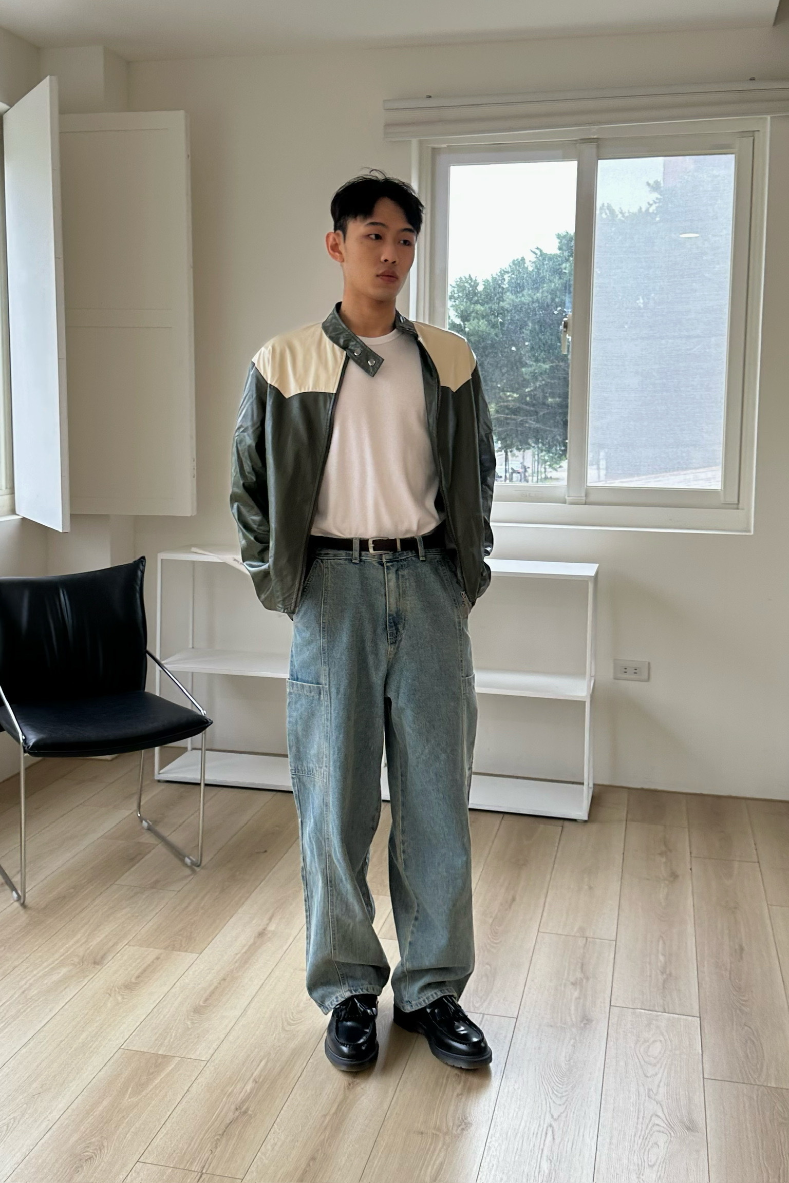 騎士拼色皮外套
