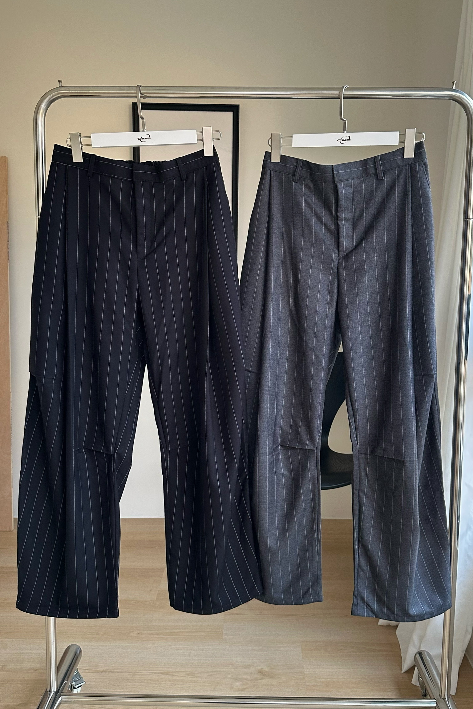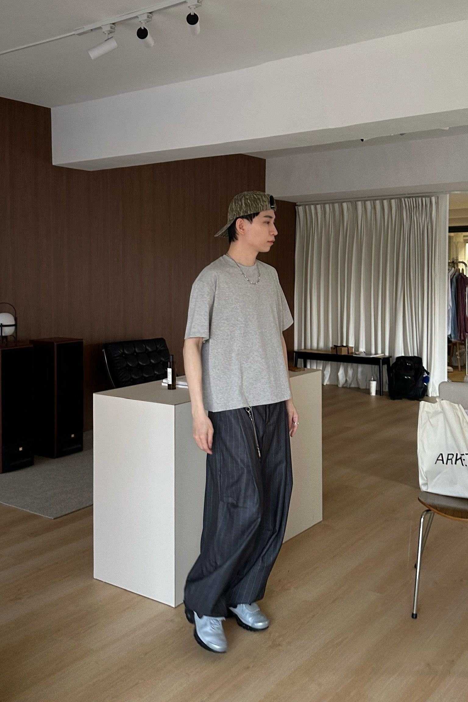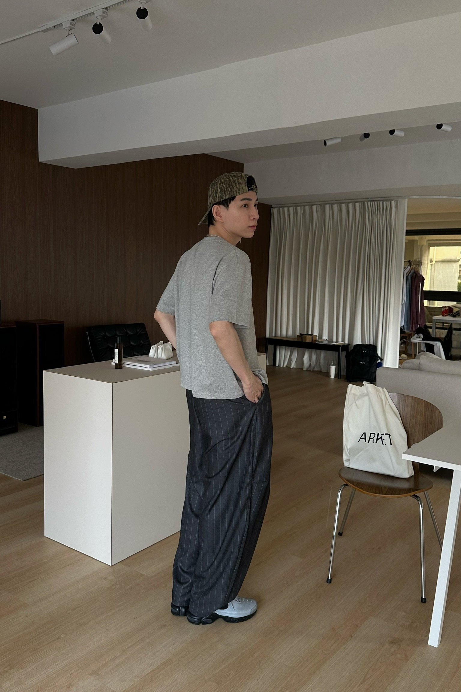 這款西裝褲融合正裝與街頭感的設計,寬鬆垂墜剪裁配上細條紋紋理,低調但極具存在感