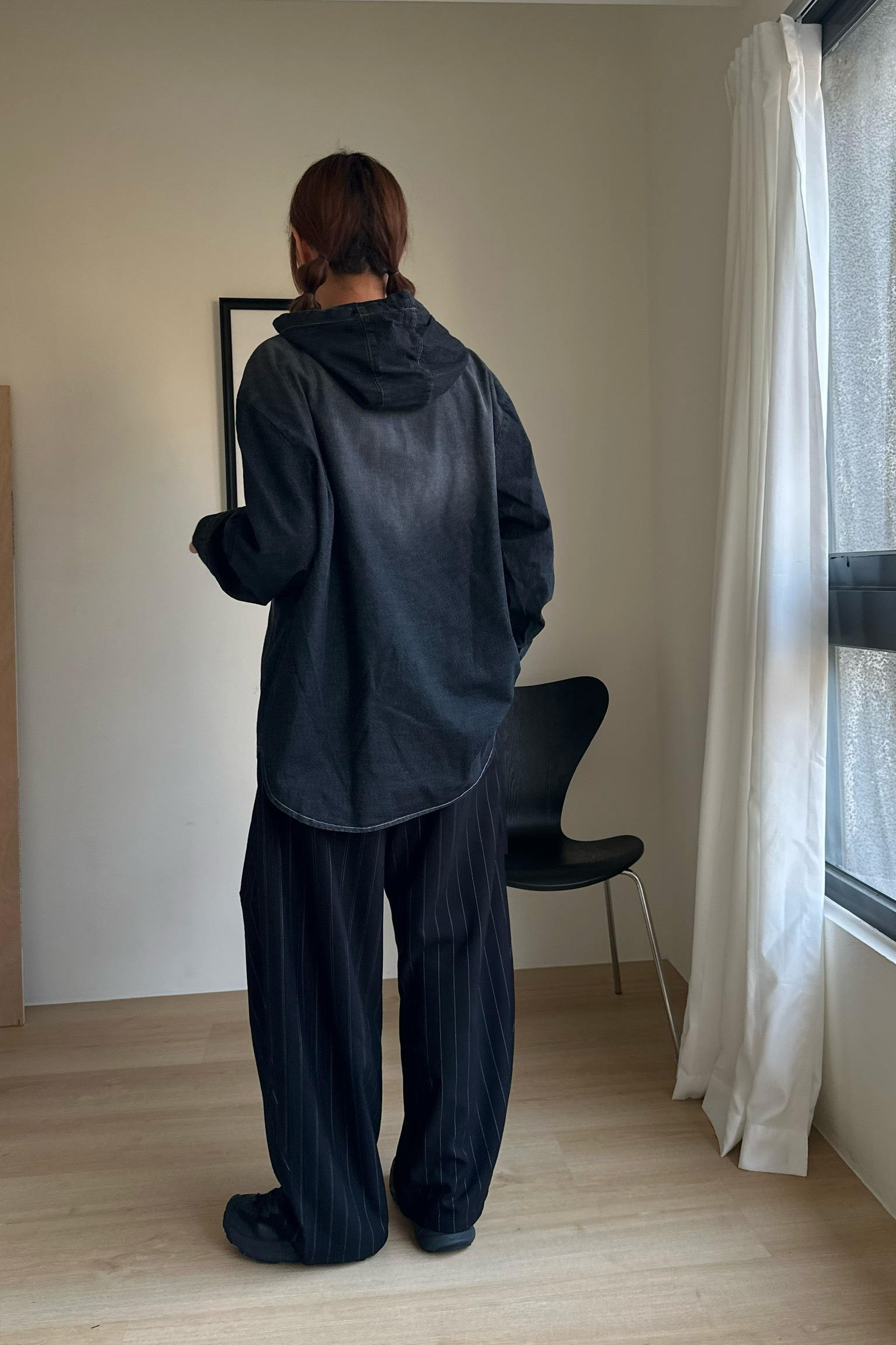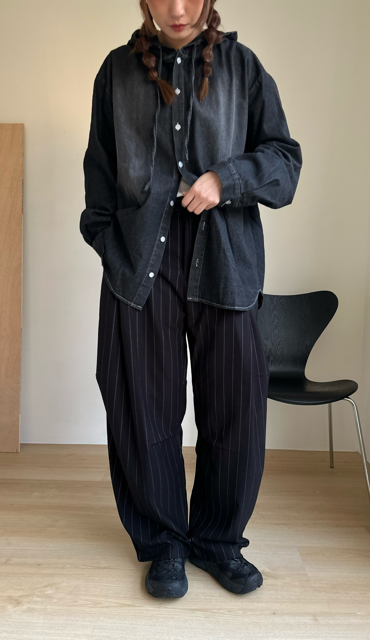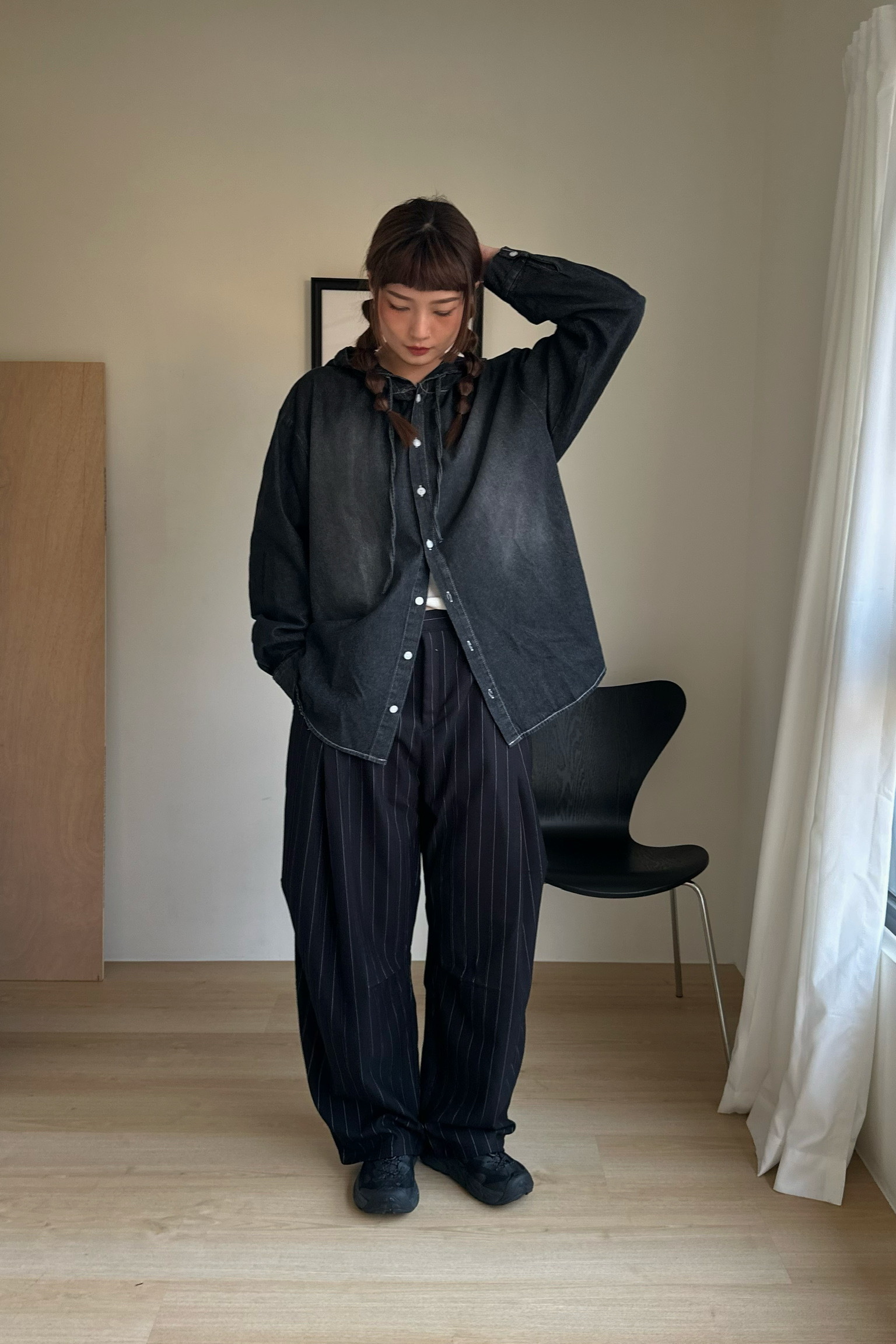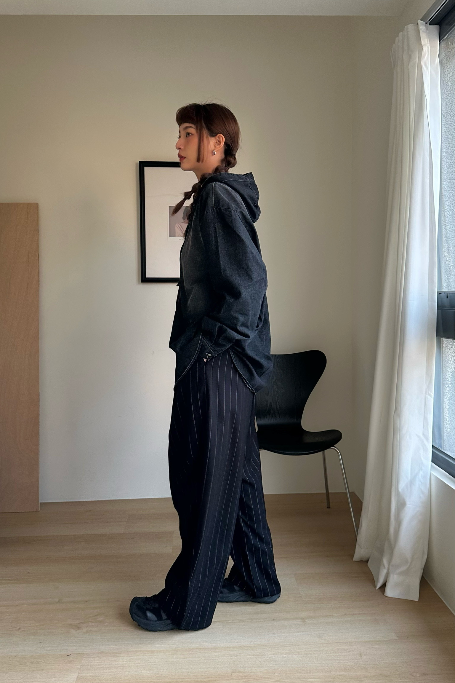 這款西裝褲融合正裝與街頭感的設計,寬鬆垂墜剪裁配上細條紋紋理,低調但極具存在感
