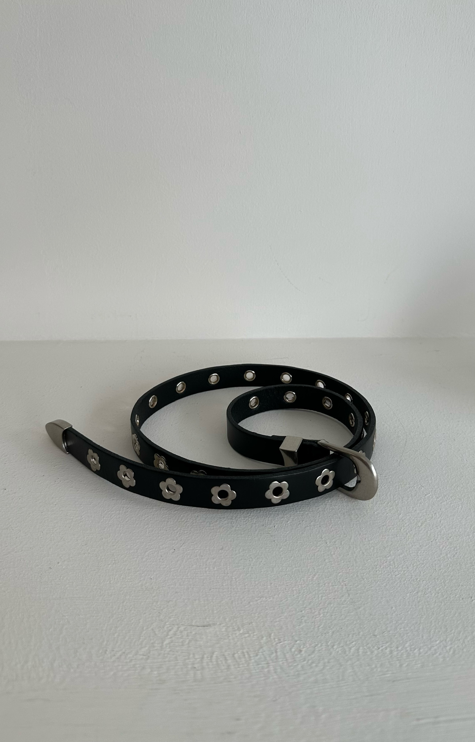 小花卯釘窄款皮帶