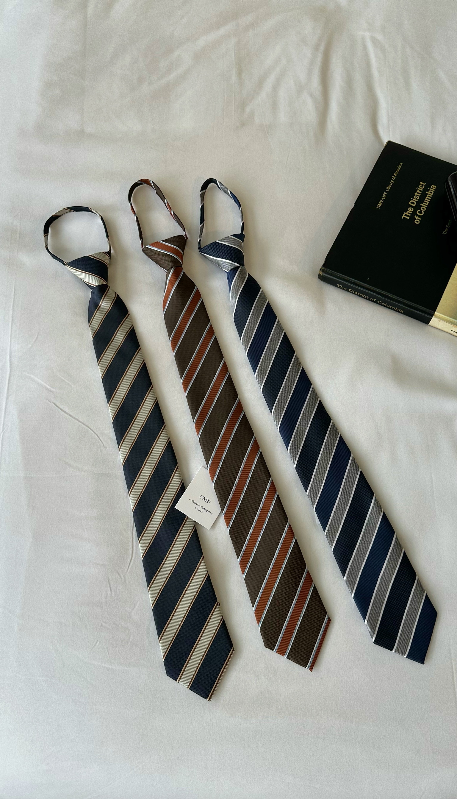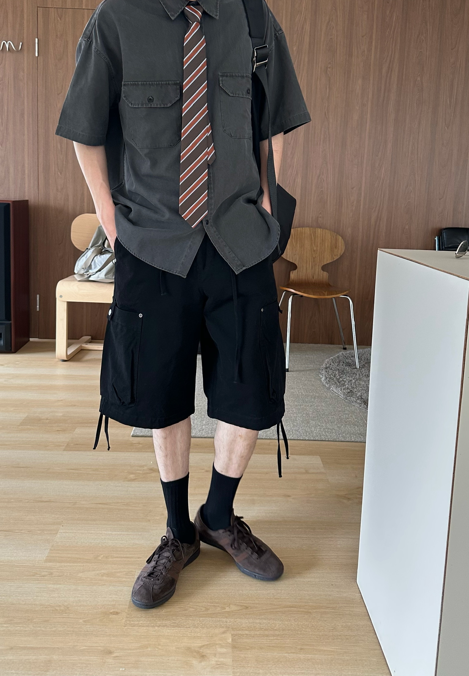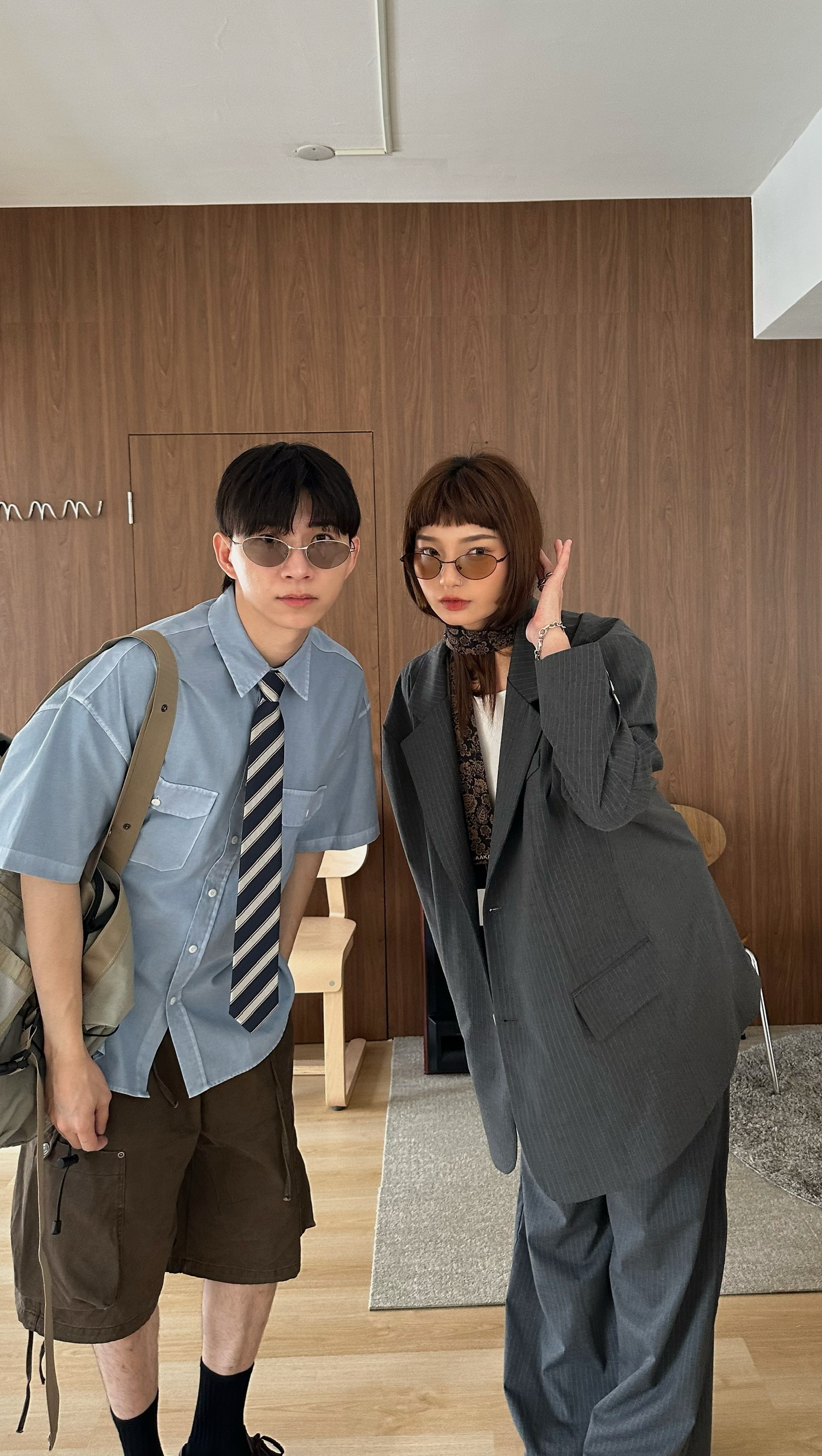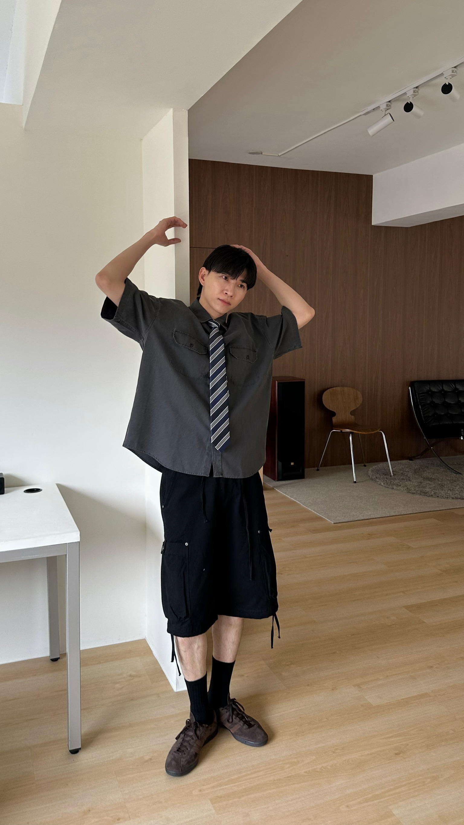這款領帶帶有復古學院感,搭配短袖襯衫與工作短褲,又有一種鬆弛的反差帥感