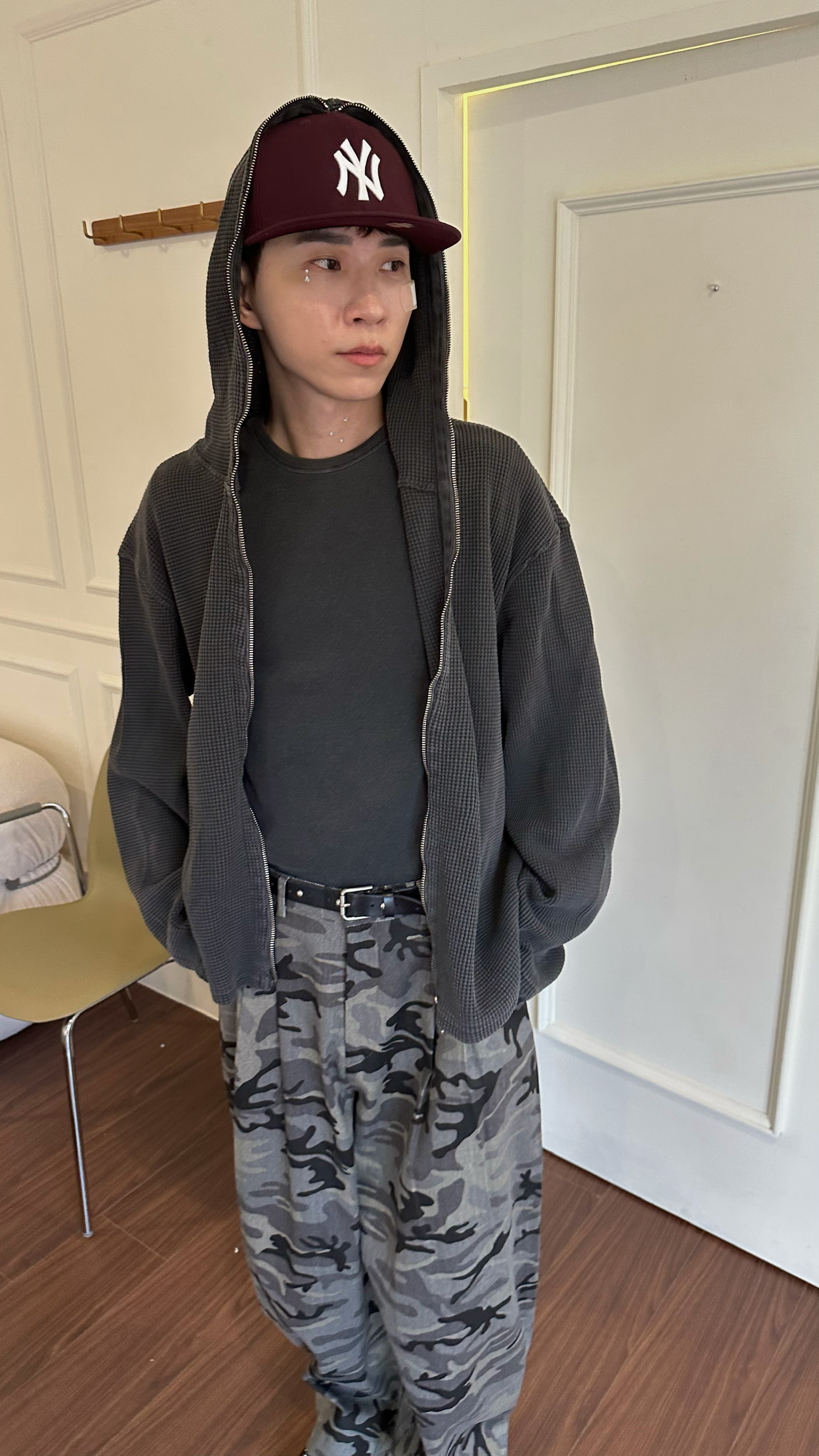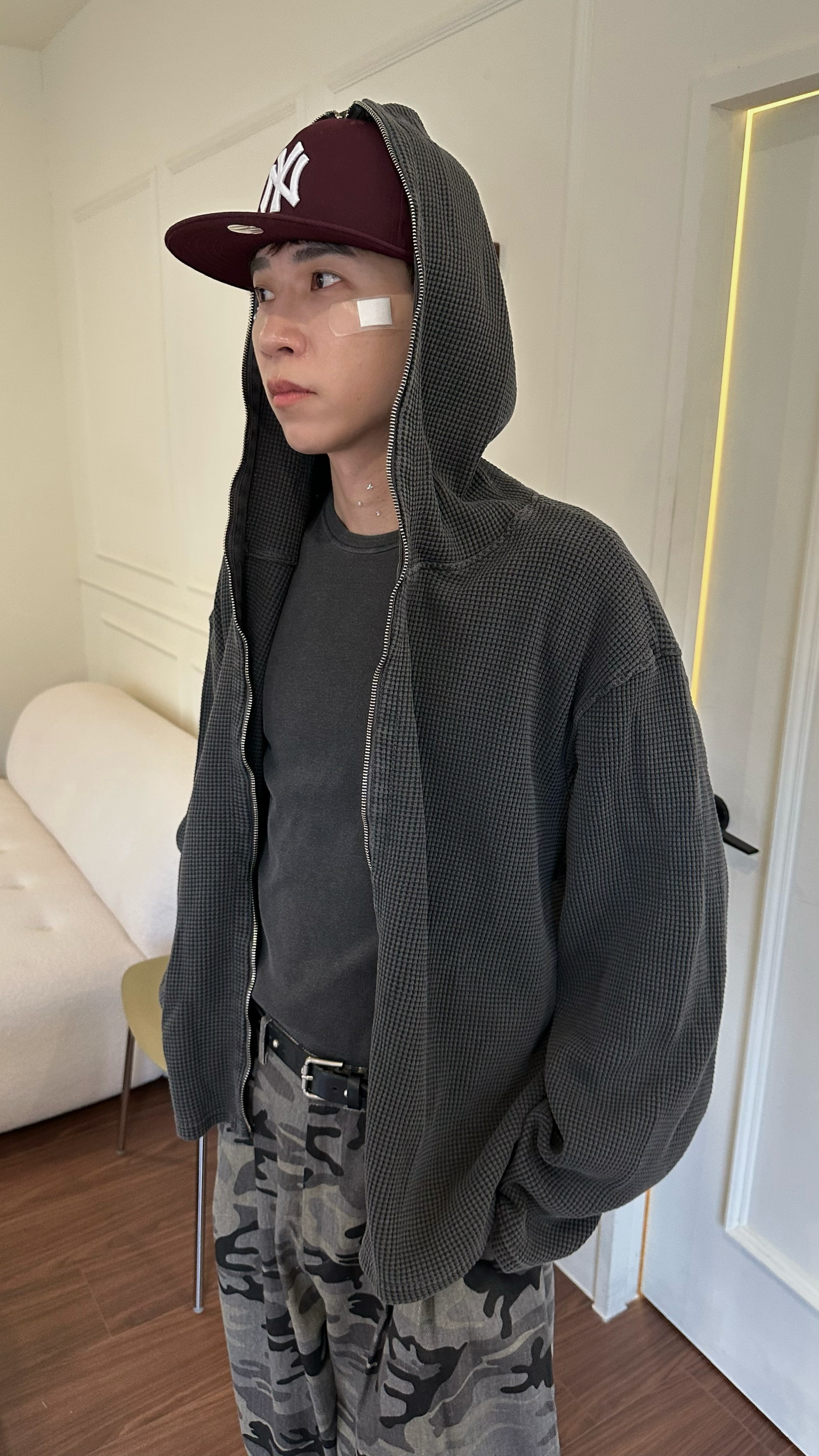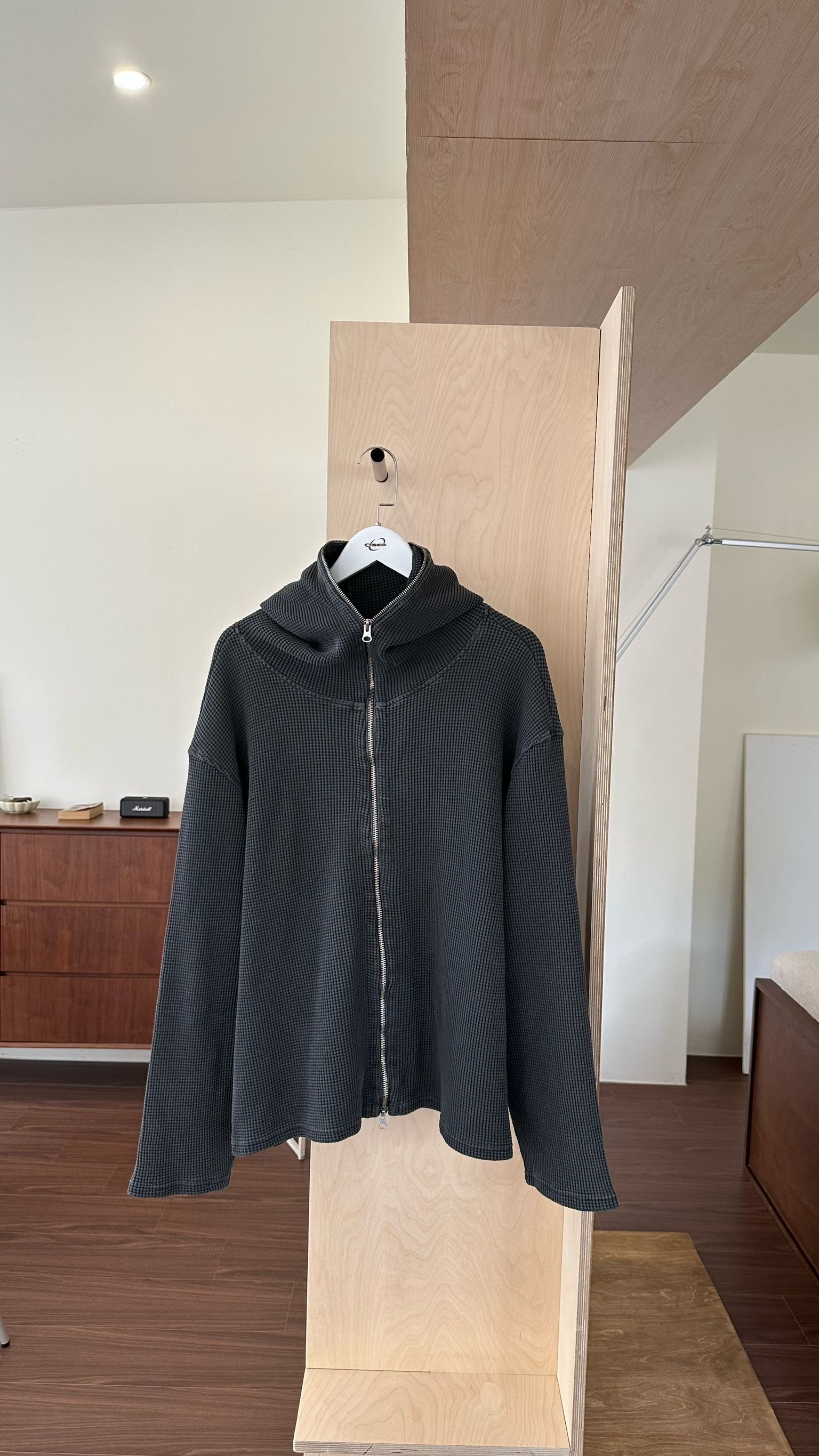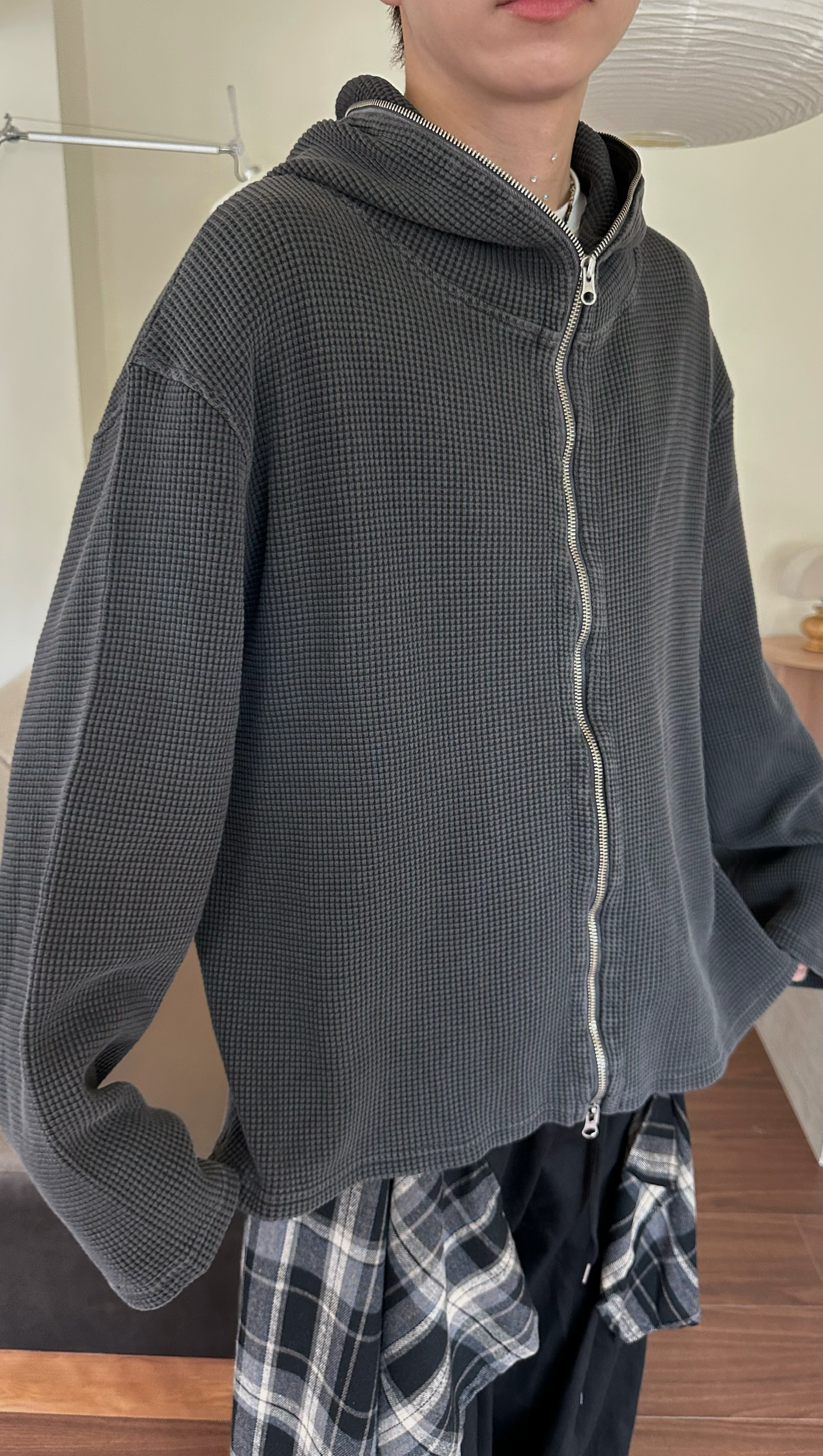 洗舊重磅華夫格連帽夾克
