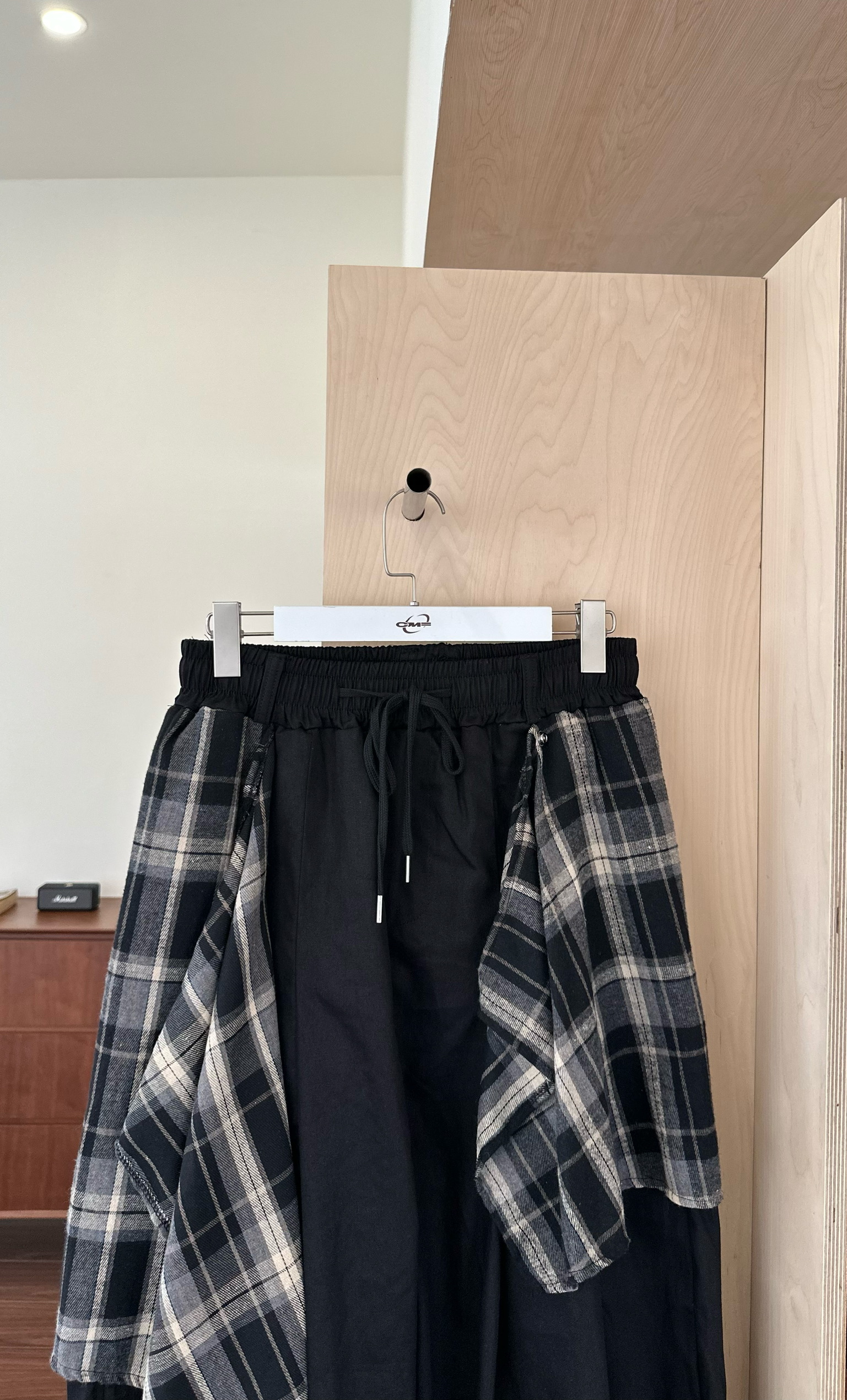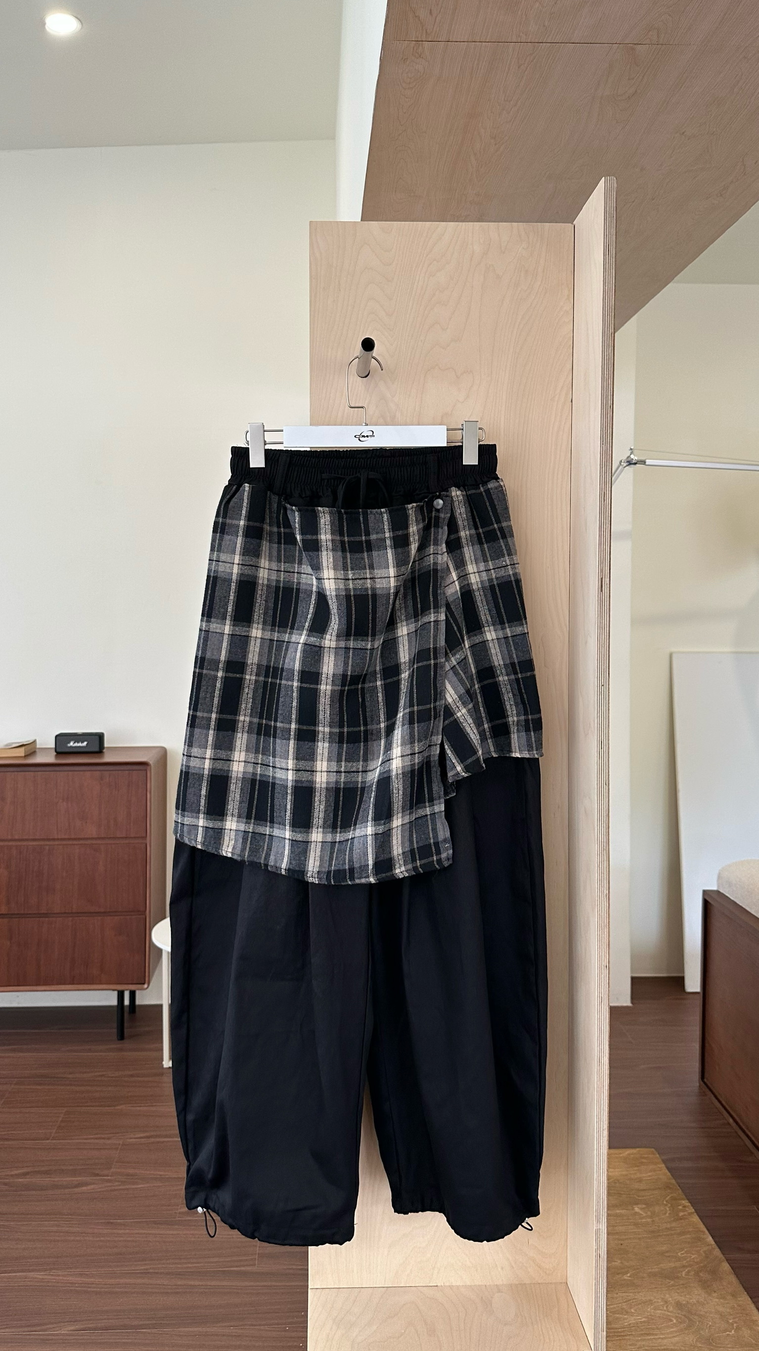 拼接的法蘭絨格紋,可以扣起來變成片裙