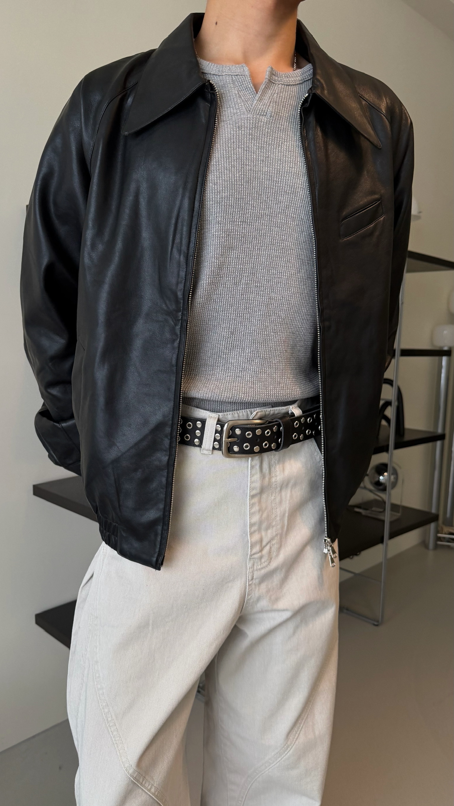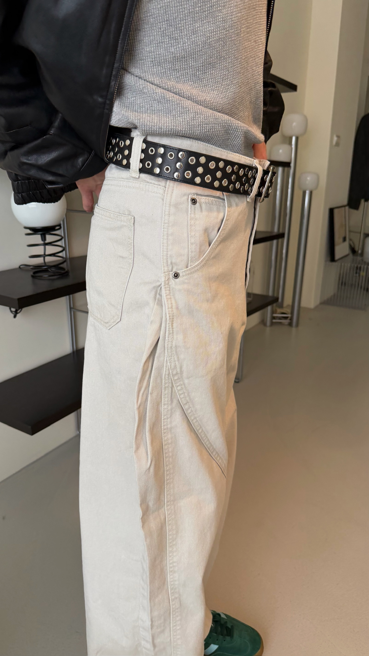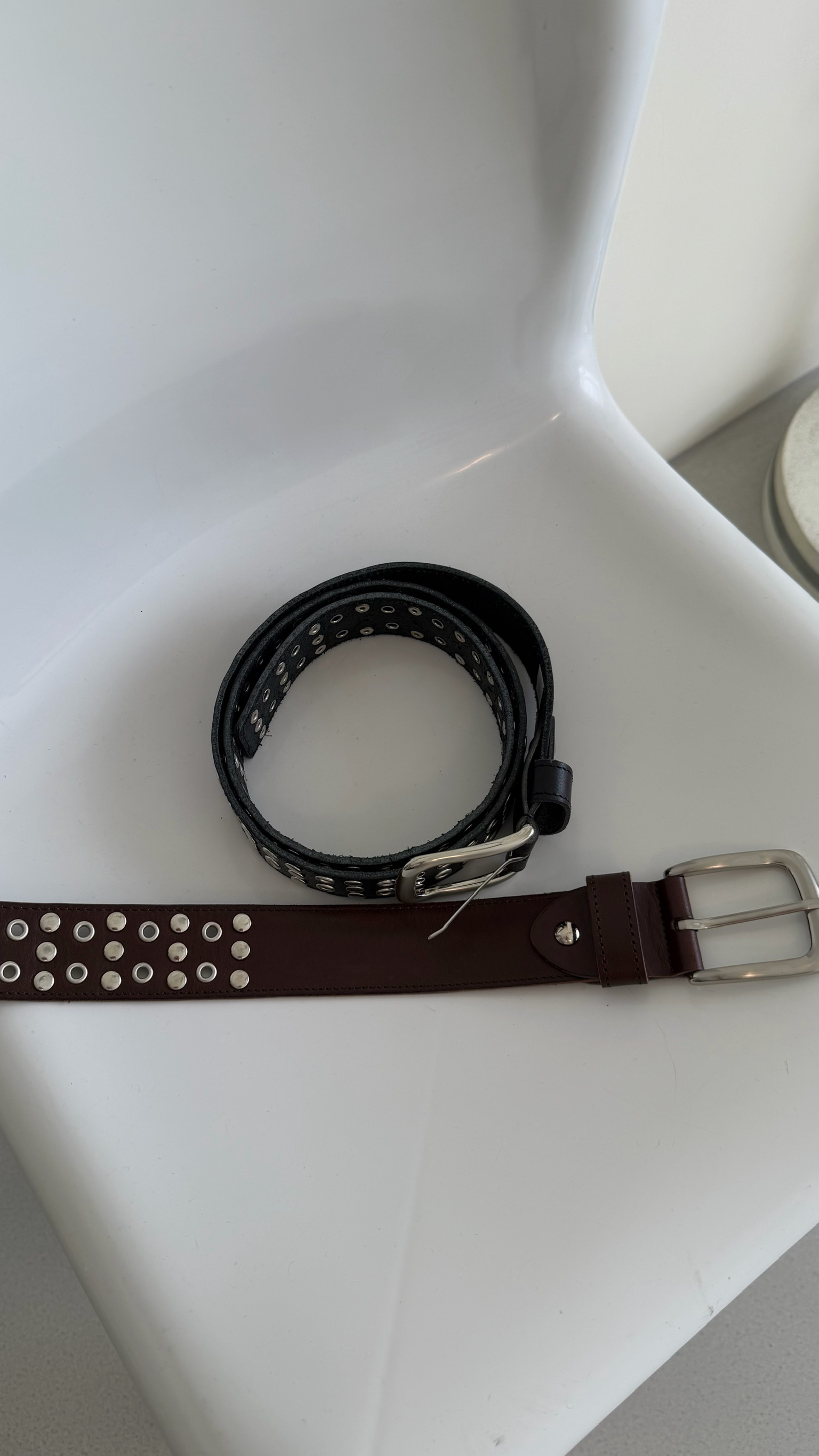 卯釘寬版牛皮皮帶