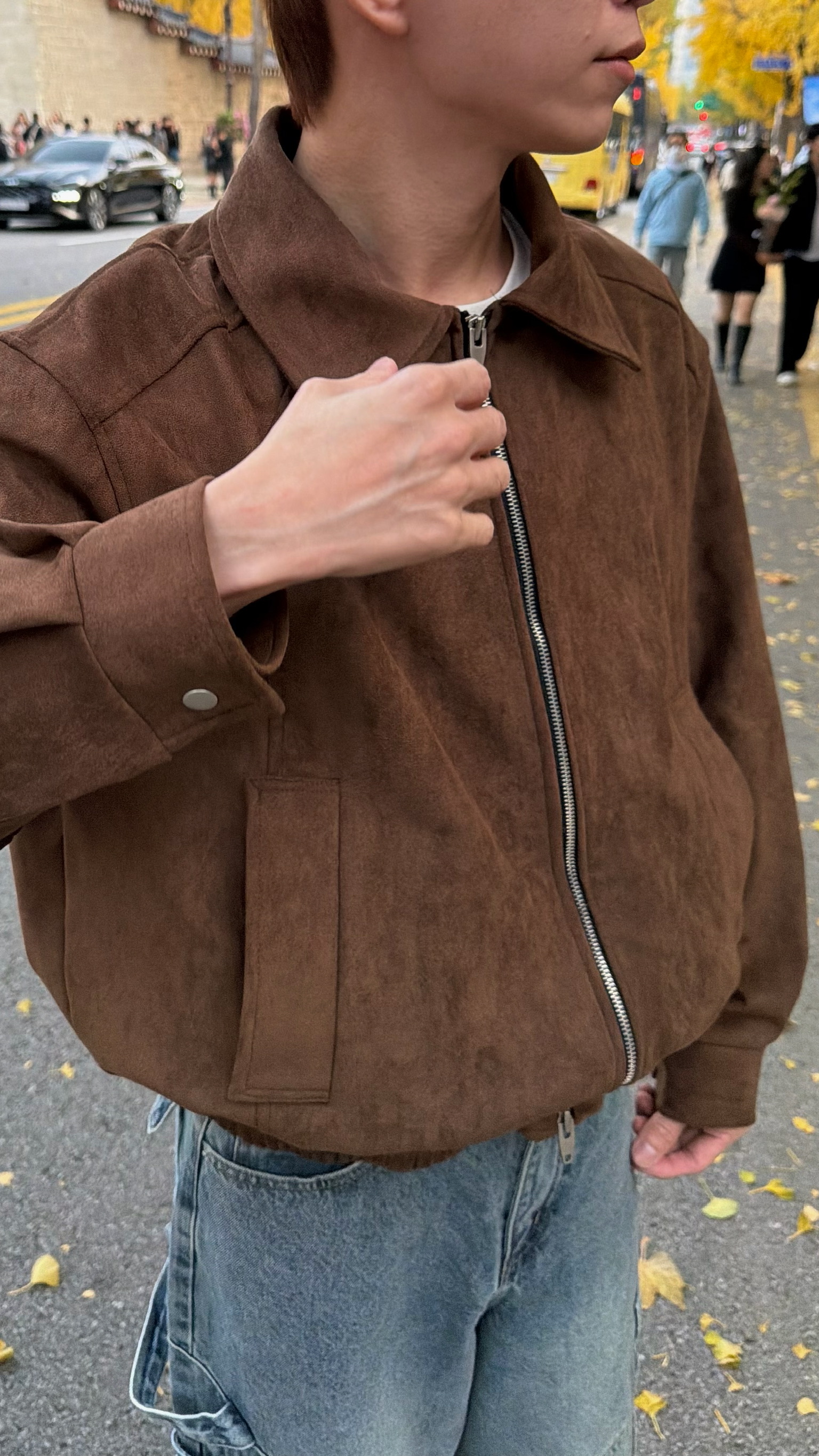短版俐落麂皮夾克