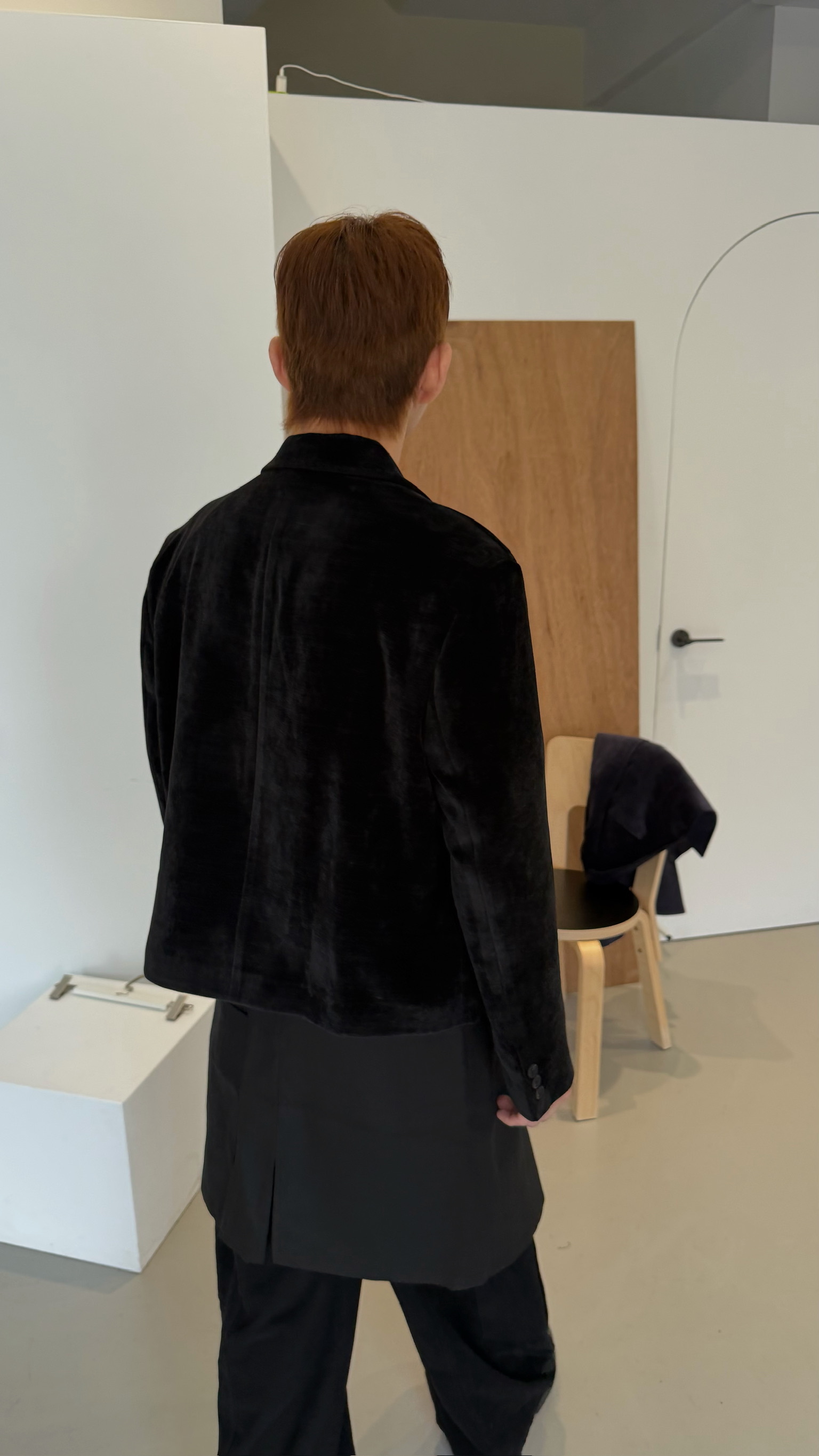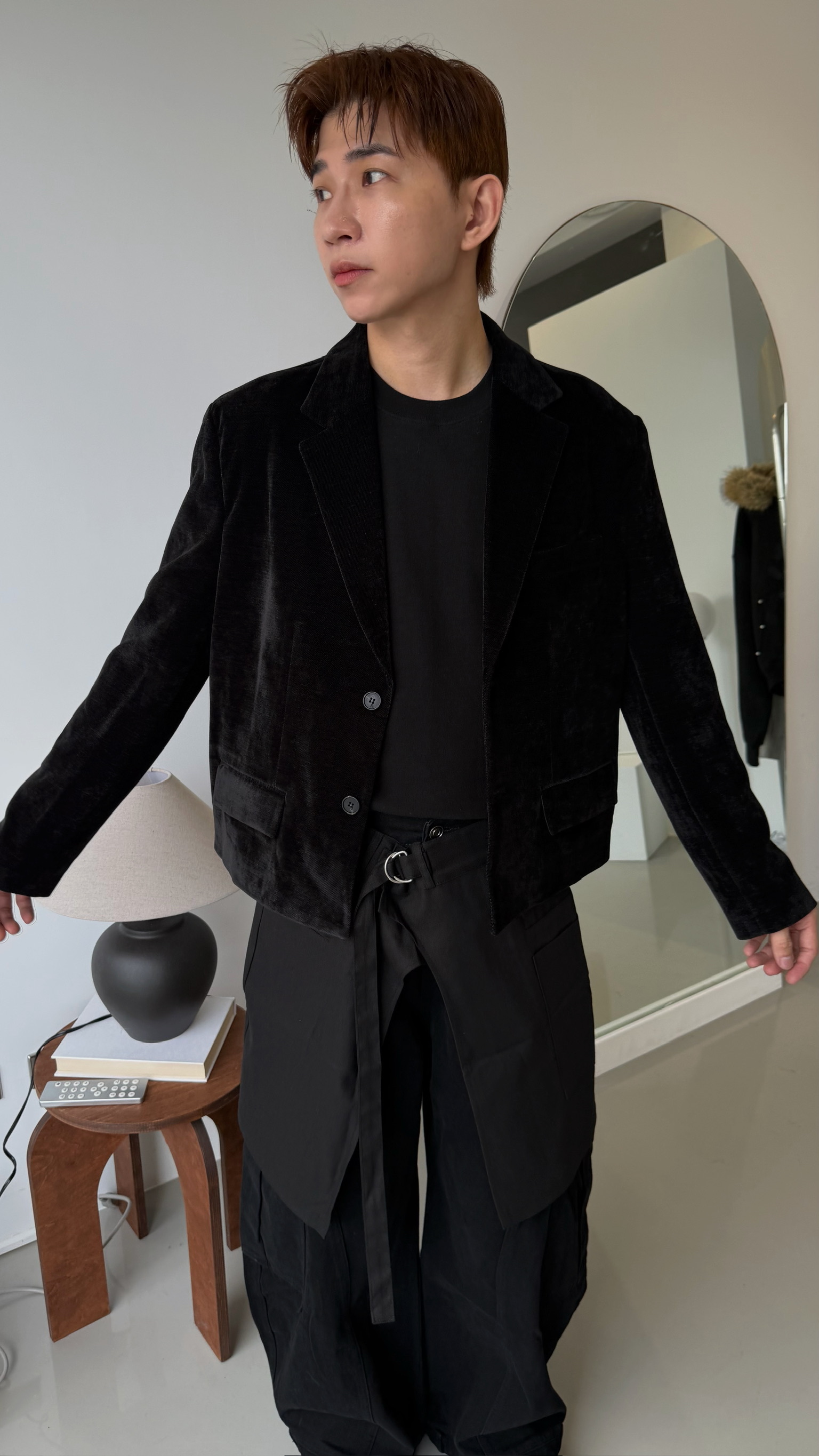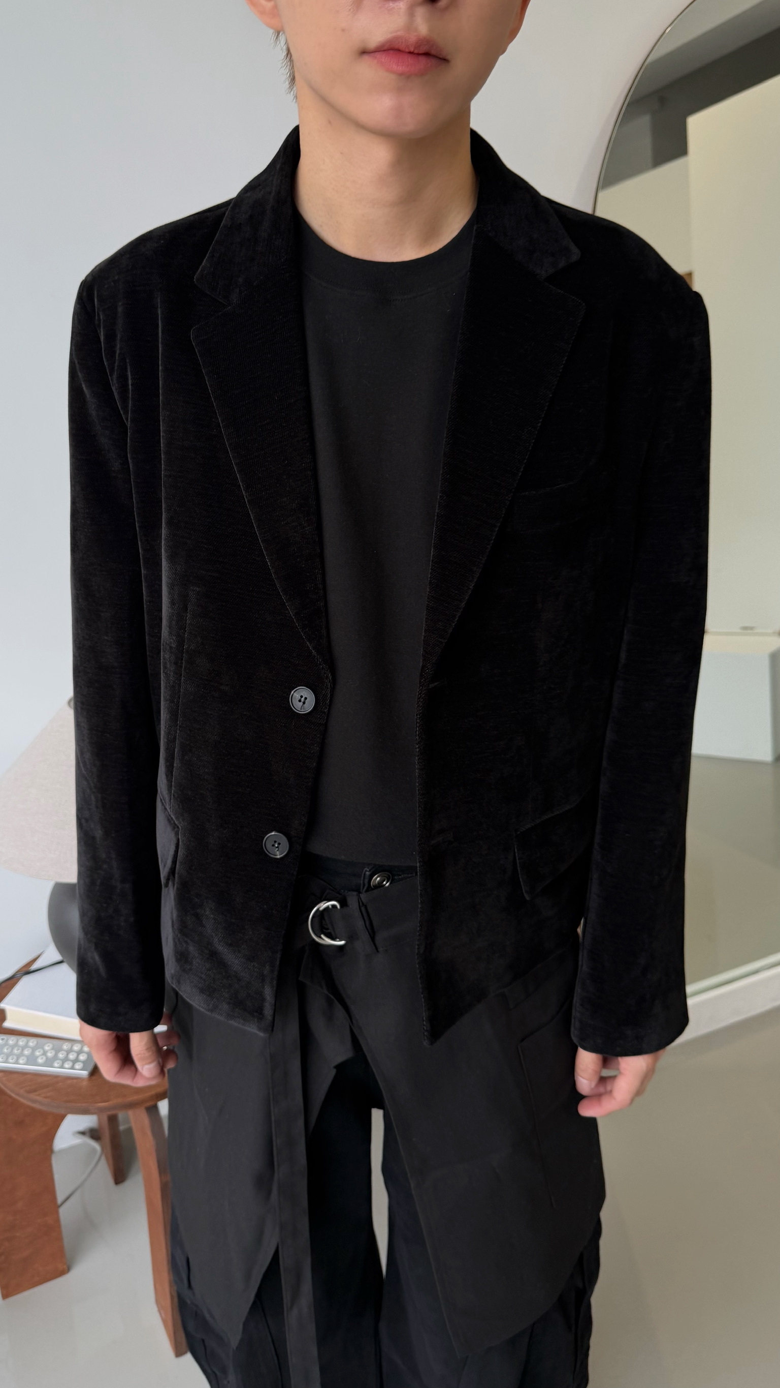 短版絨面西裝外套