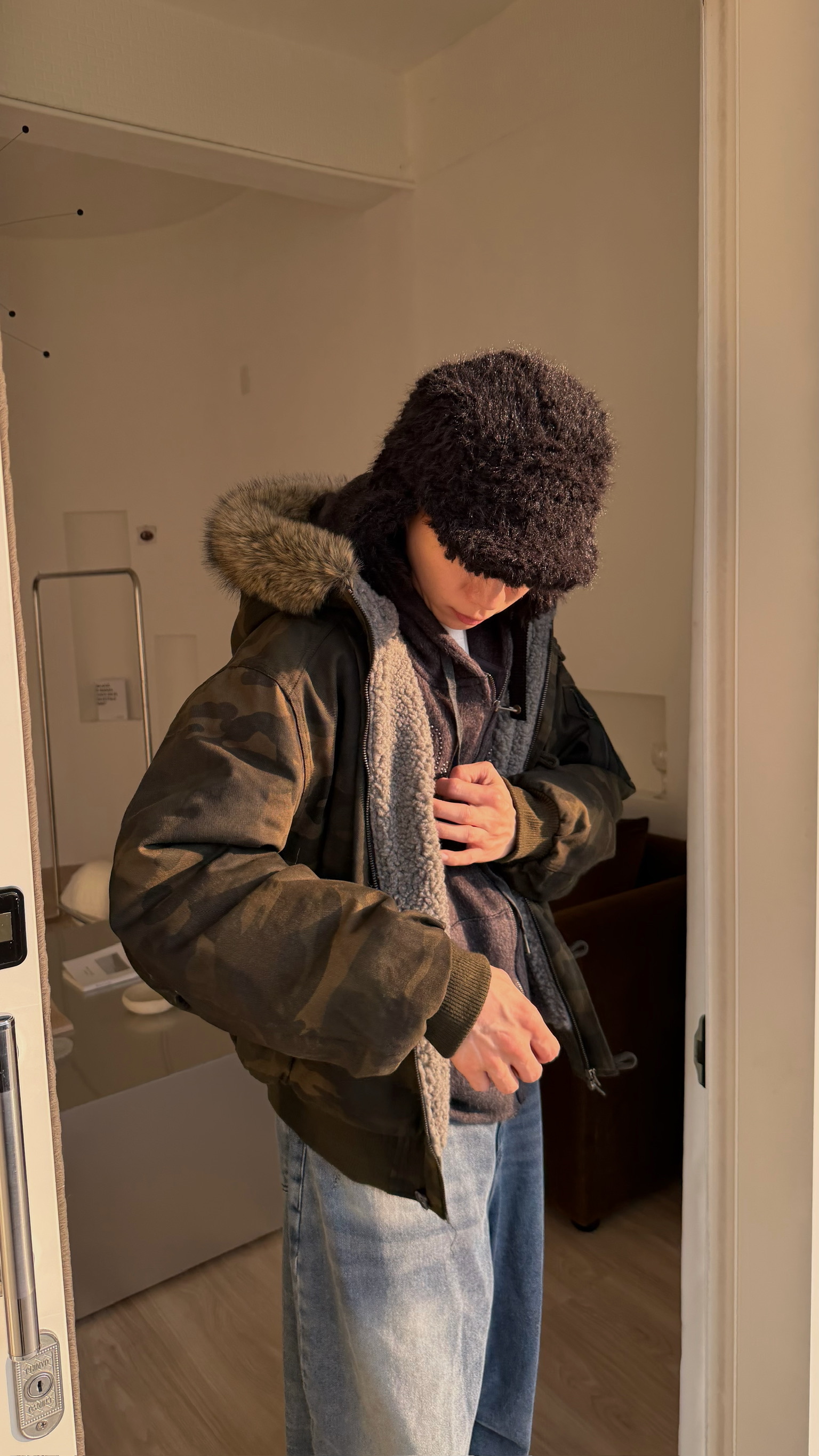 浣熊毛迷彩保暖外套