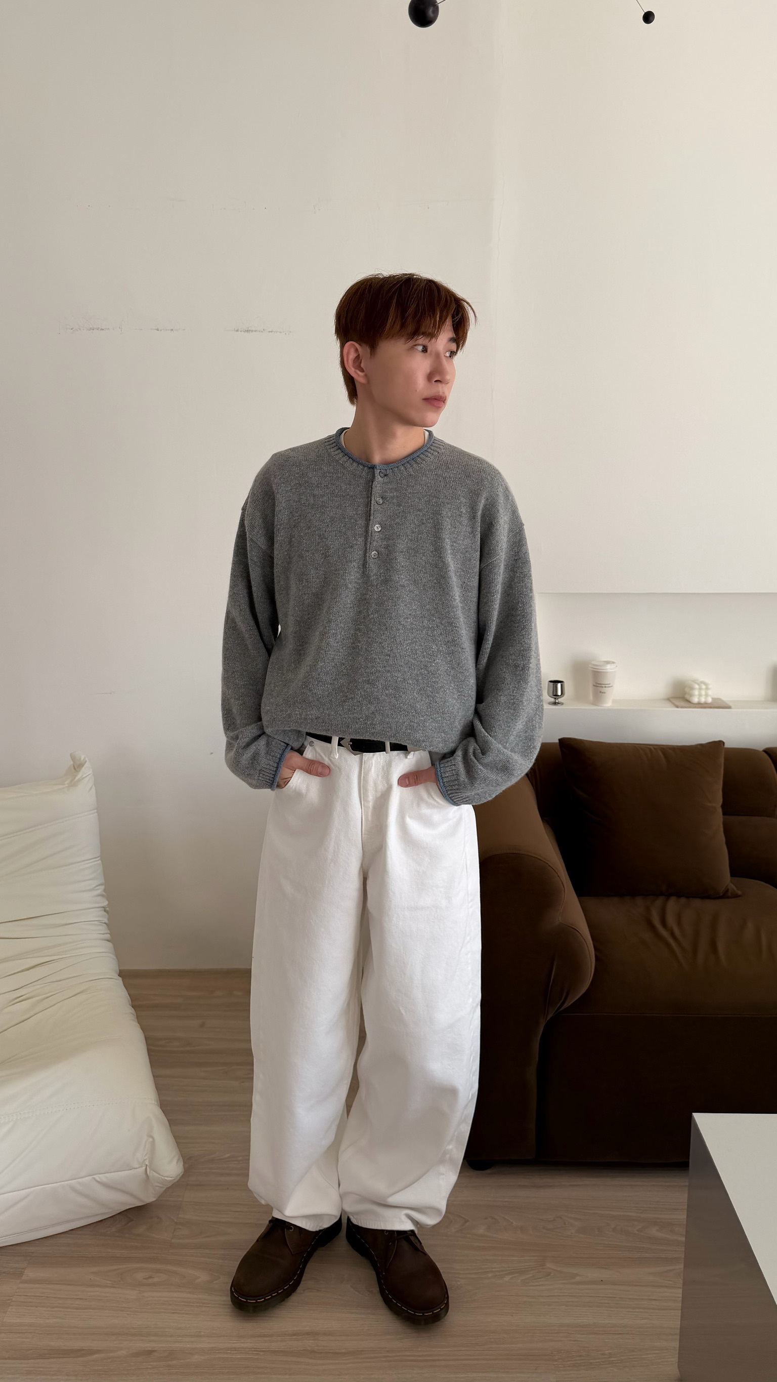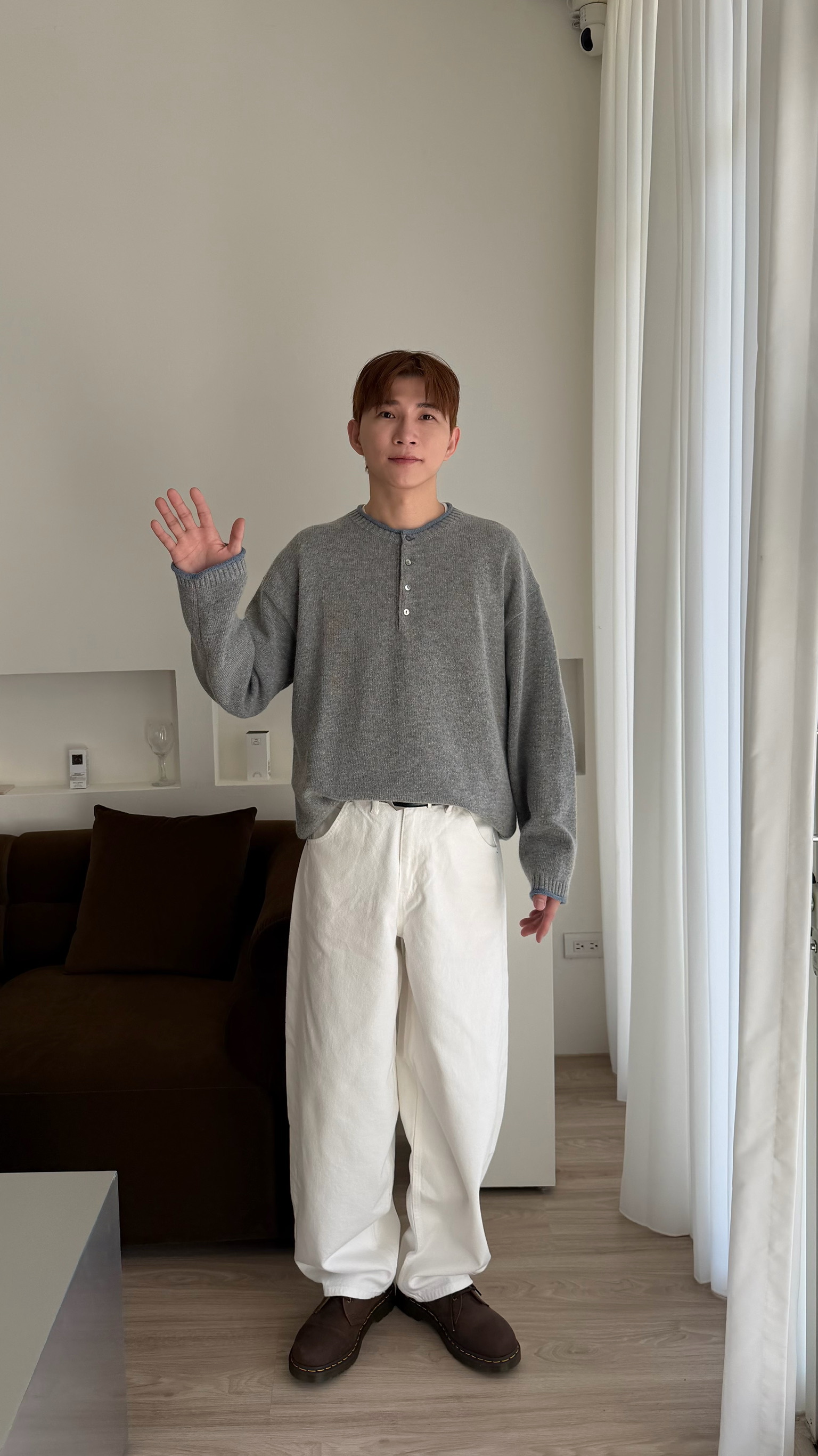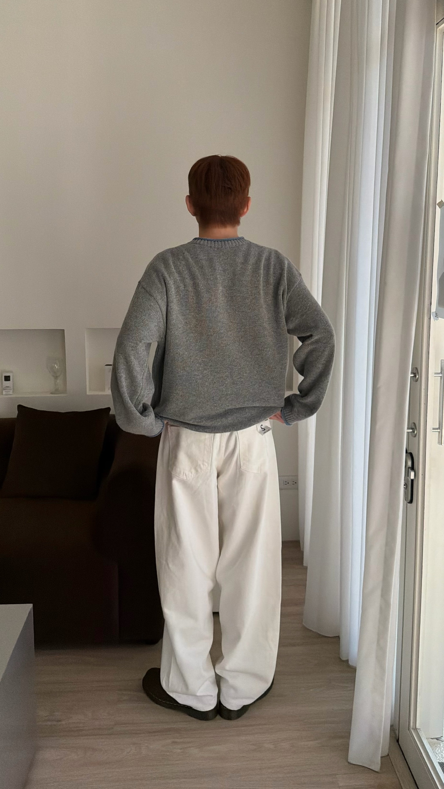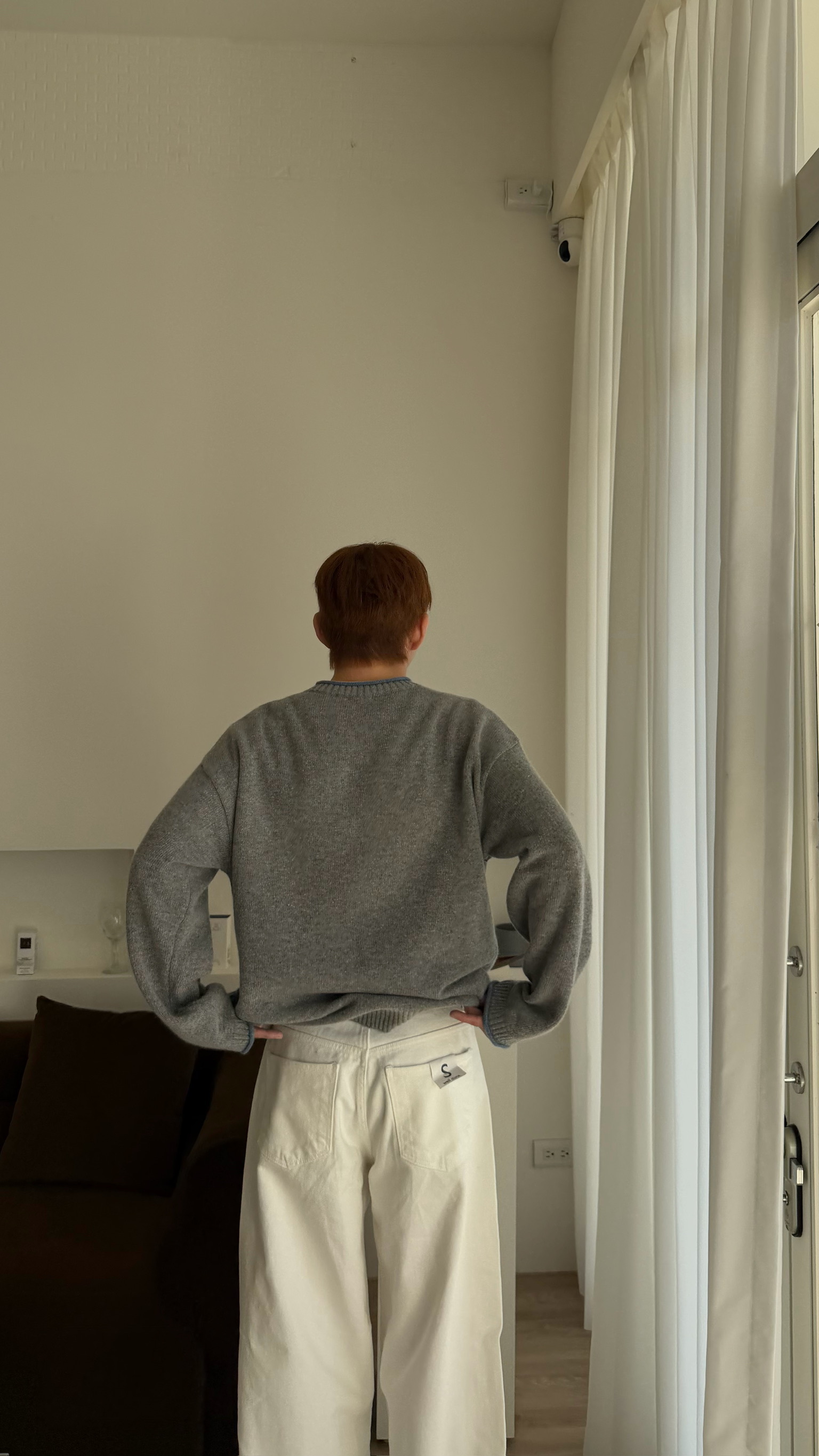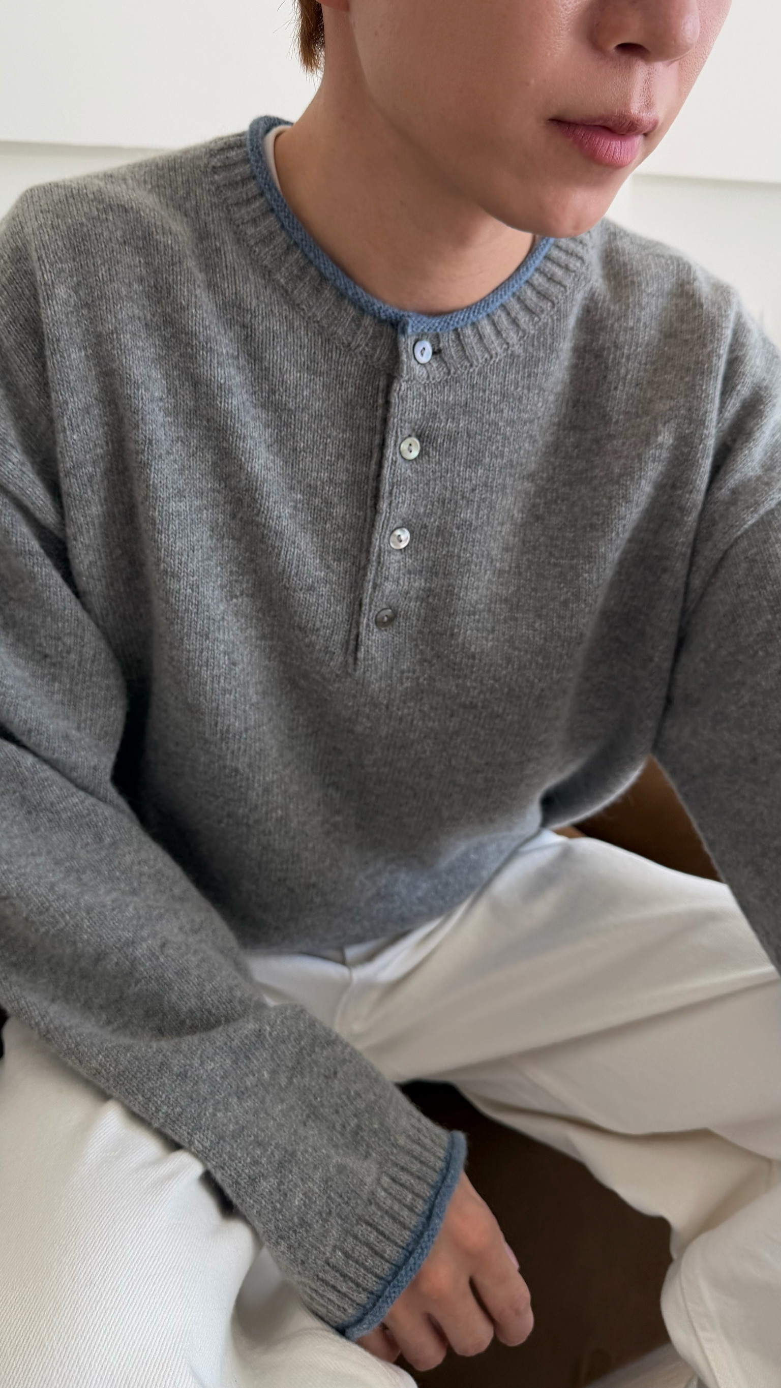 淺灰搭配淺藍的領口 及袖口