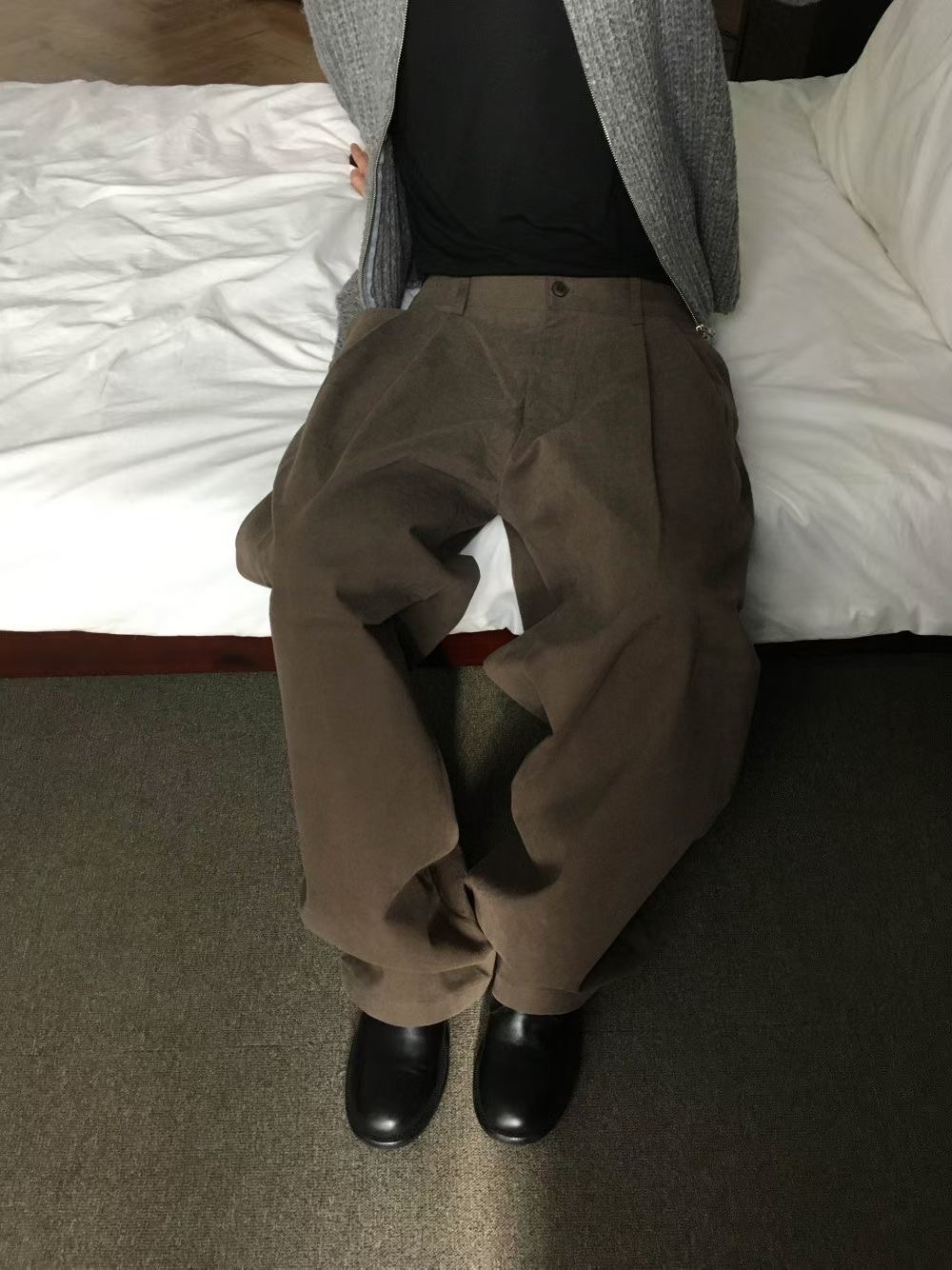 K24 後鬆緊霧面休閒西裝褲(摩卡)