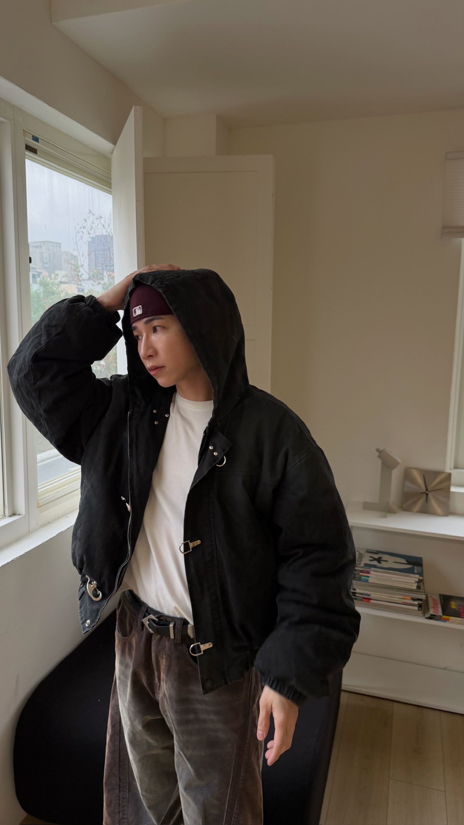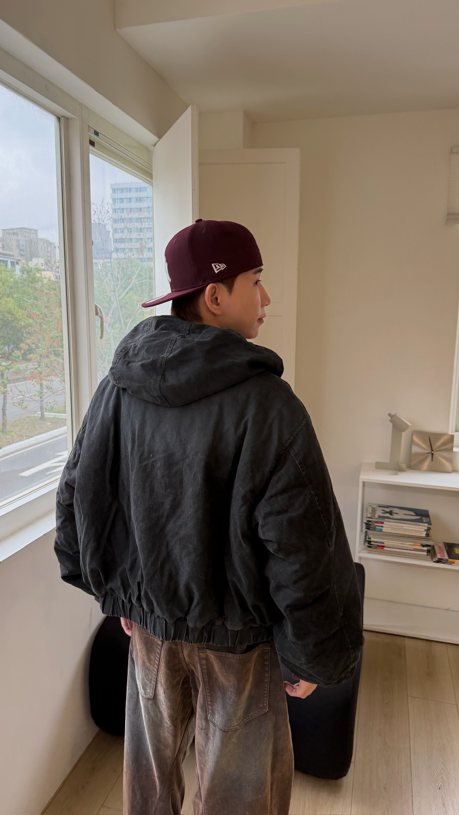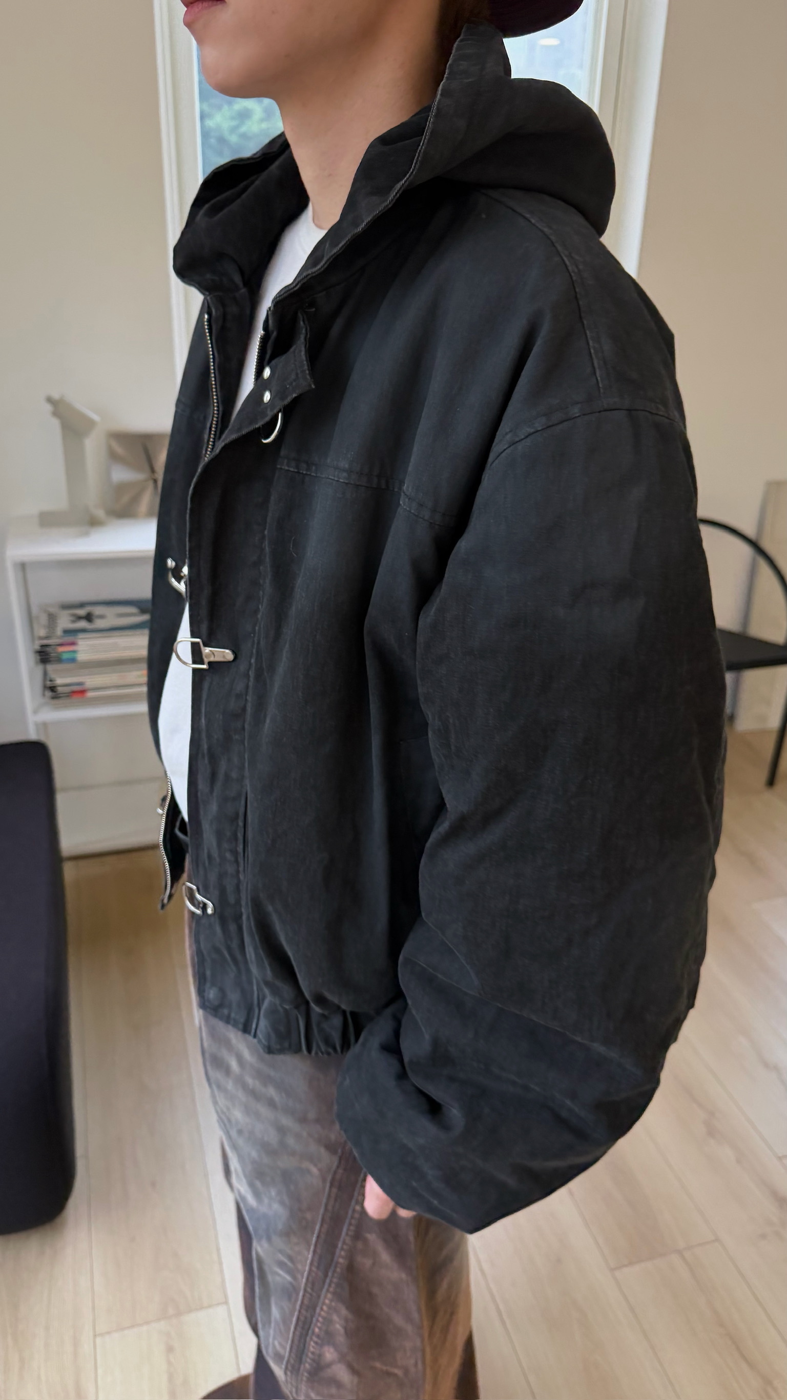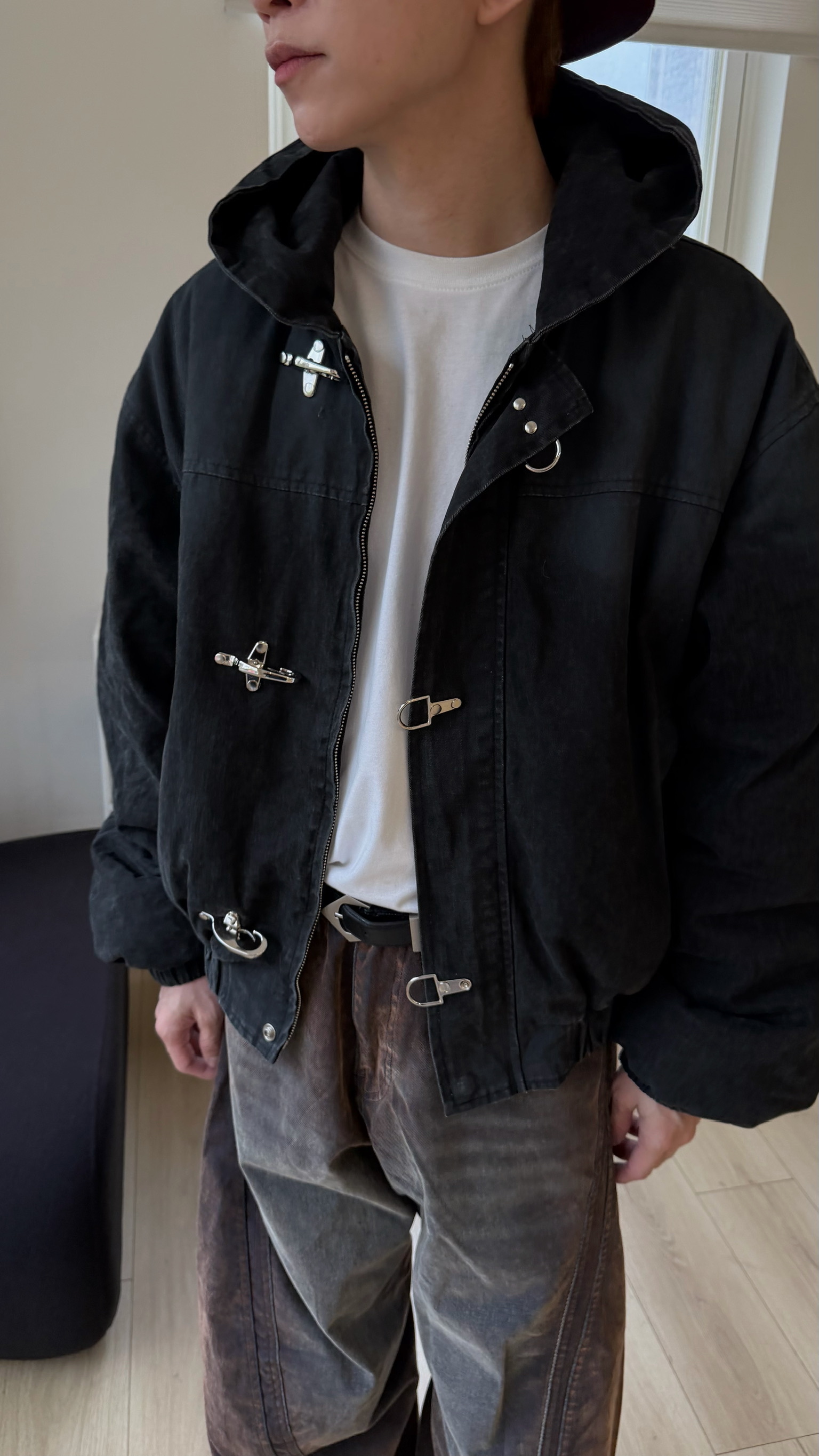 洗舊霧面消防扣連帽外套