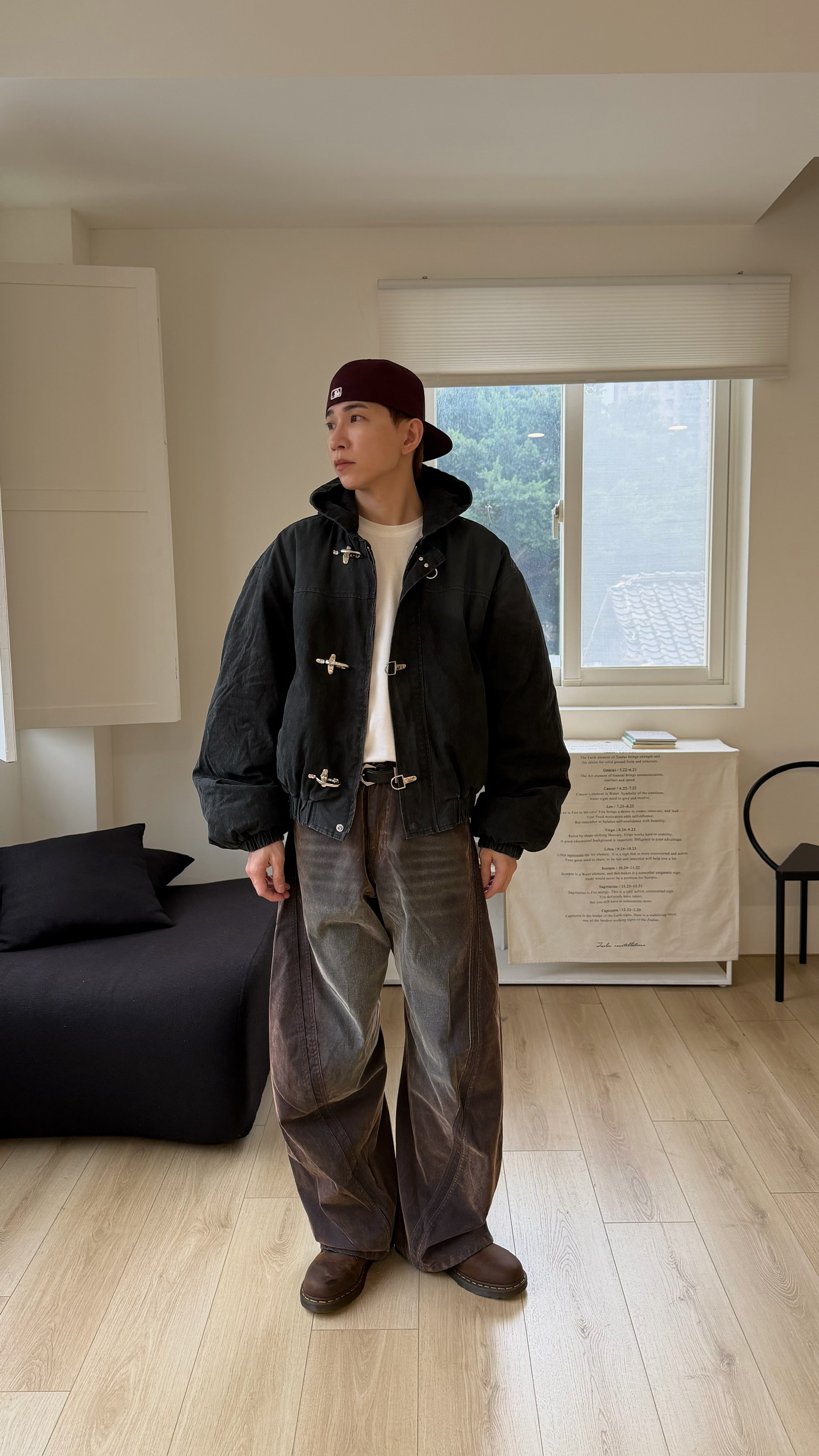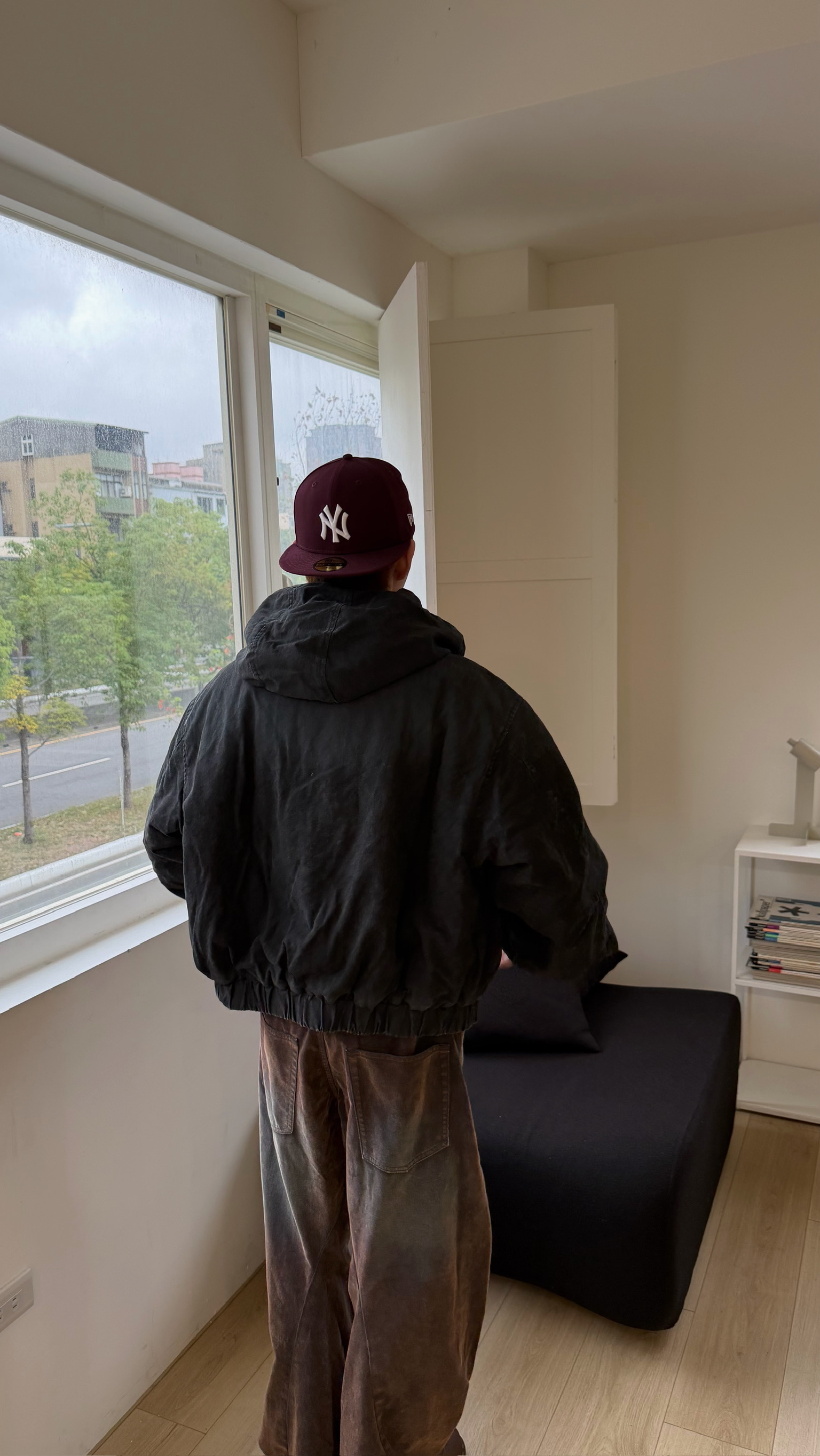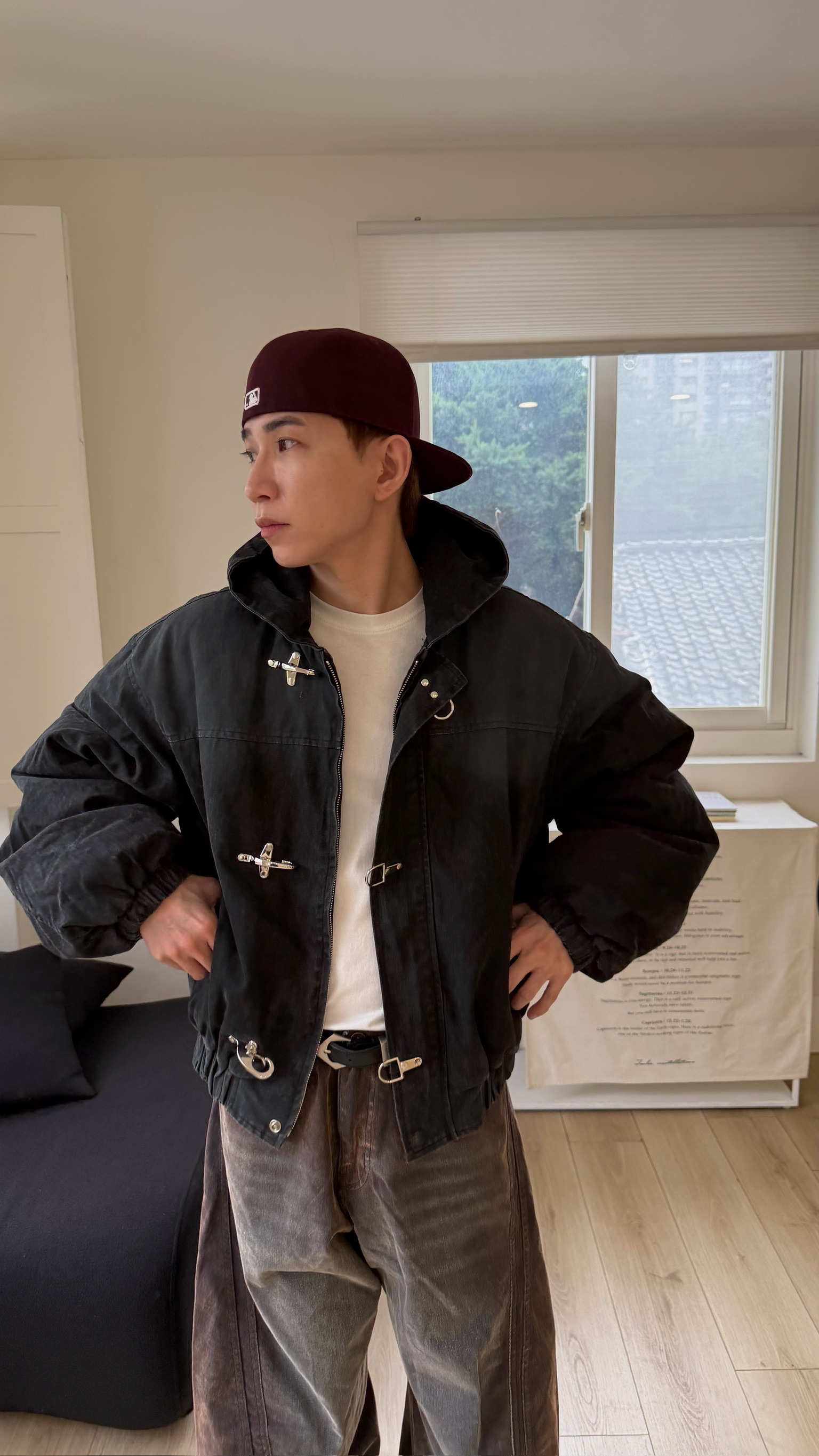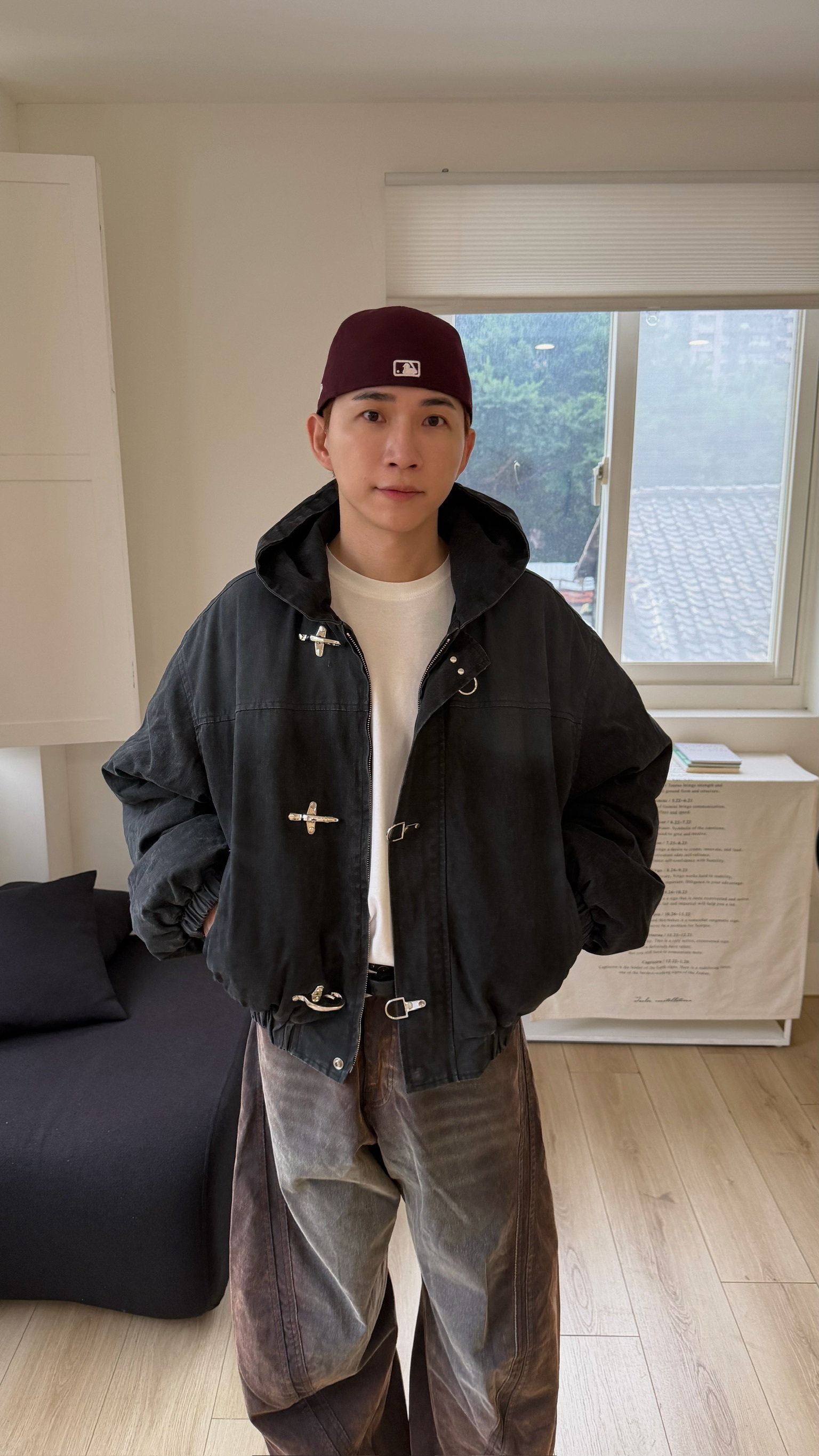 洗舊霧面消防扣連帽外套