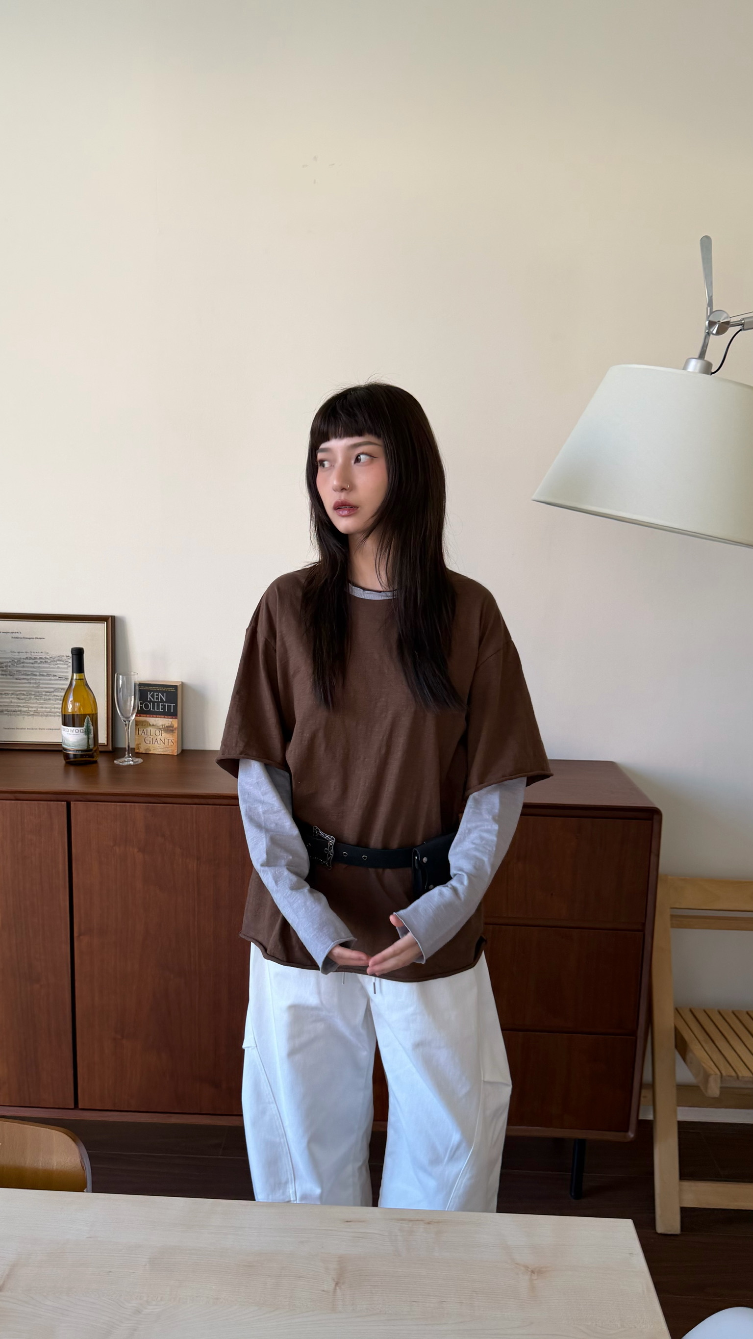 兩件式拚袖棉質T shirt
