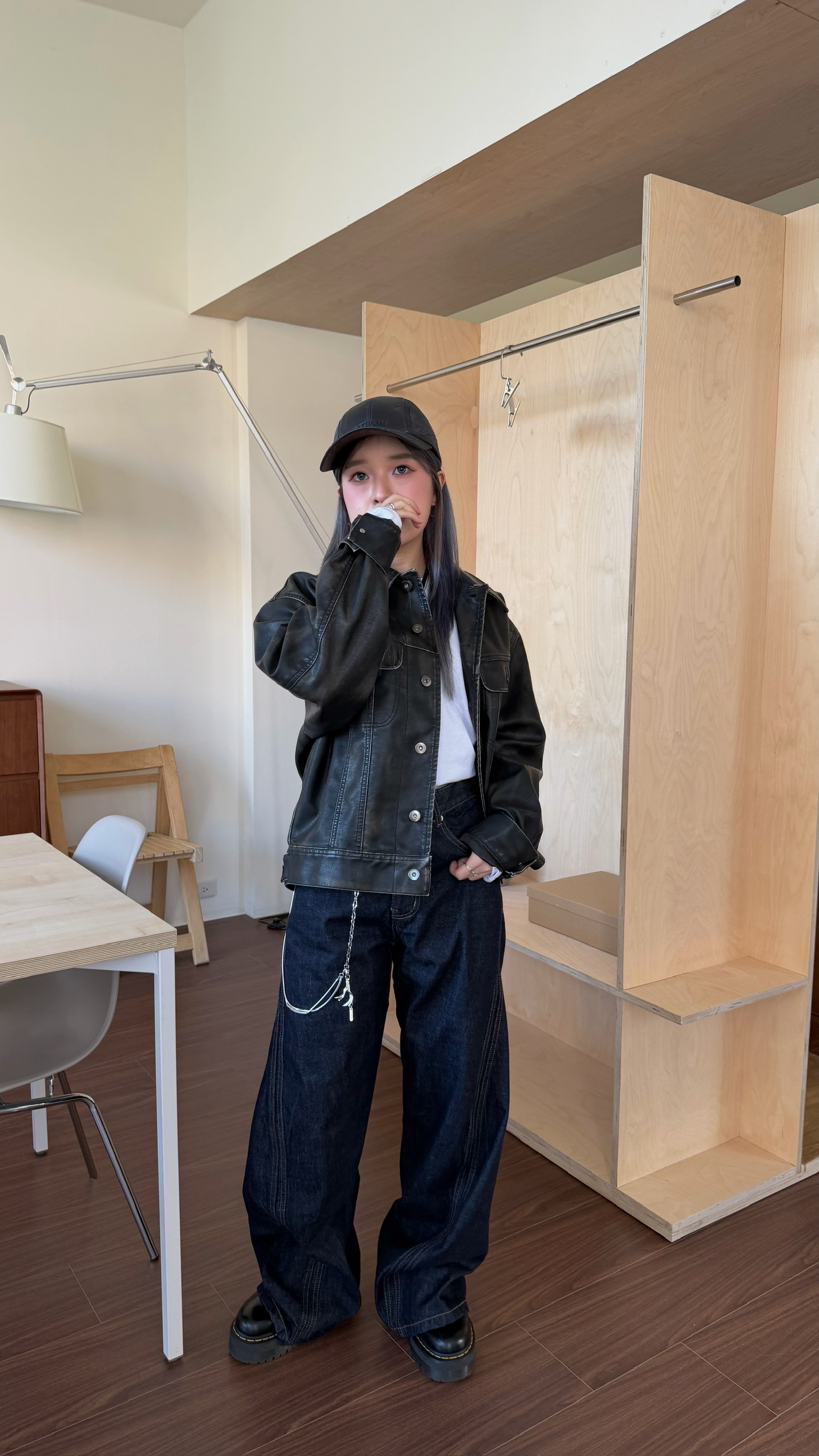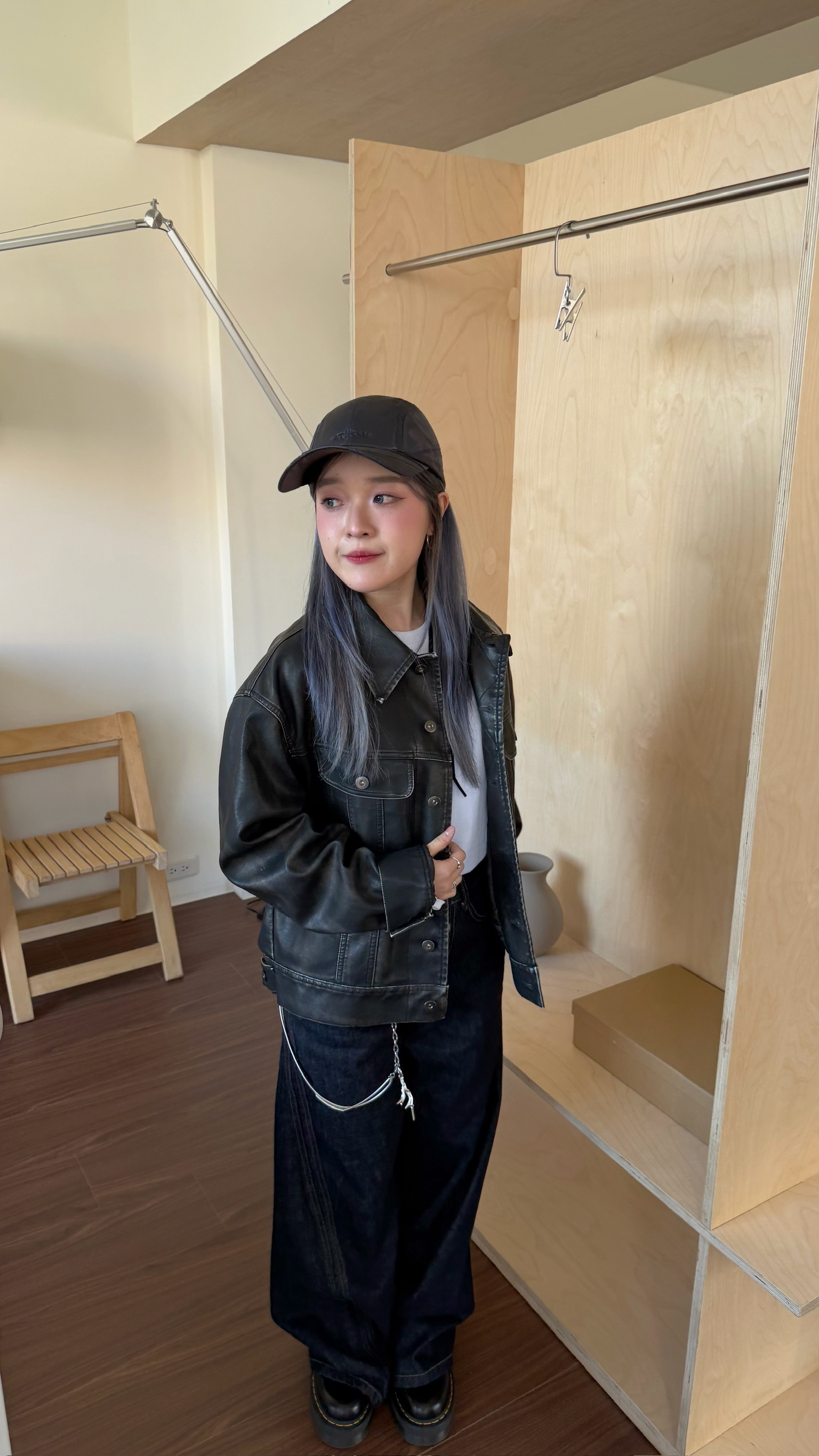俐落洗舊皮革夾克
