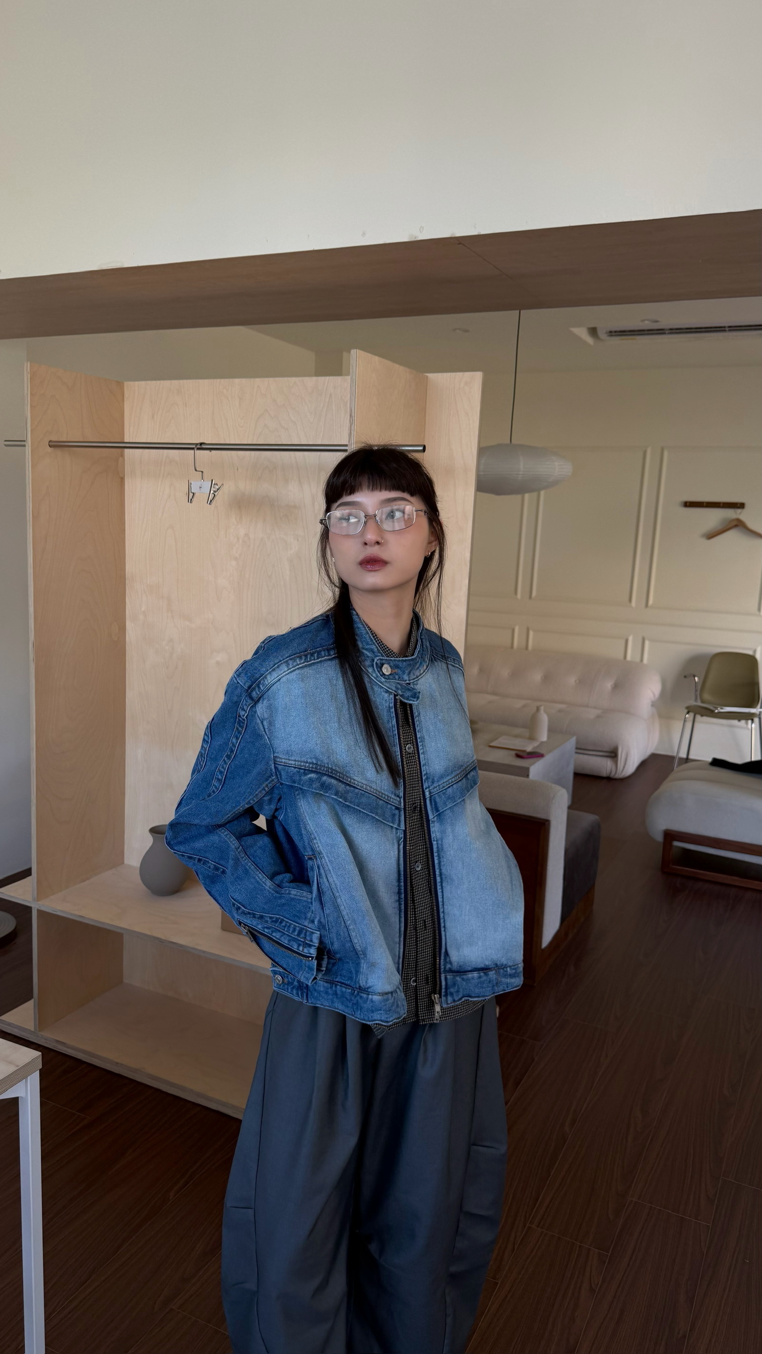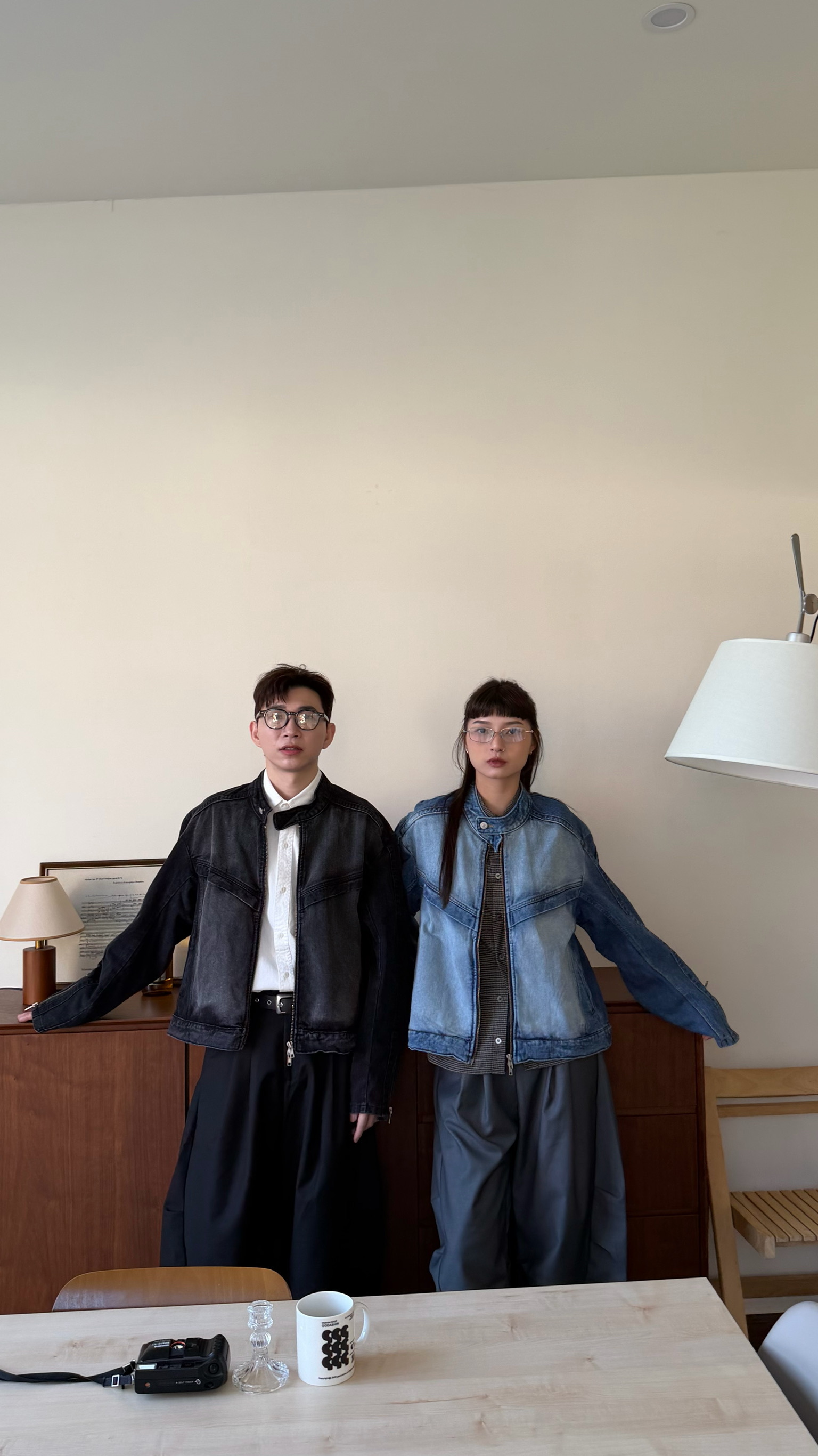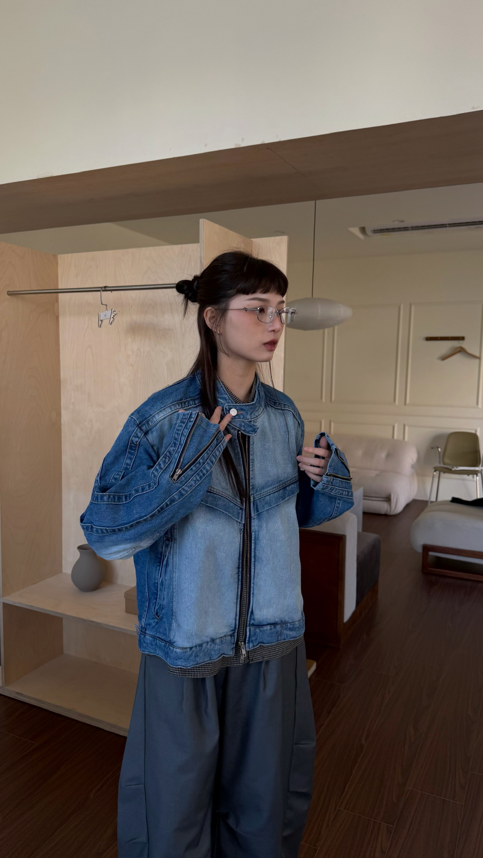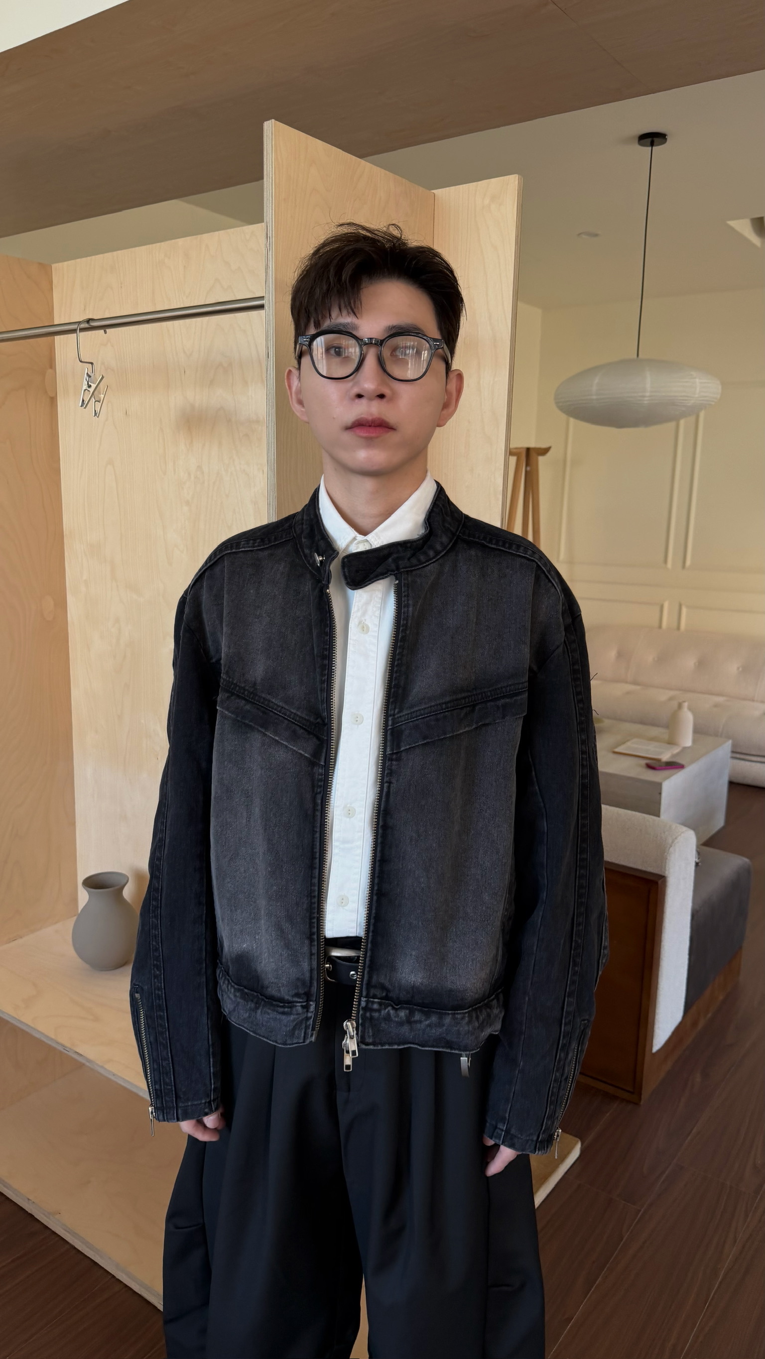 立領刷白牛仔夾克