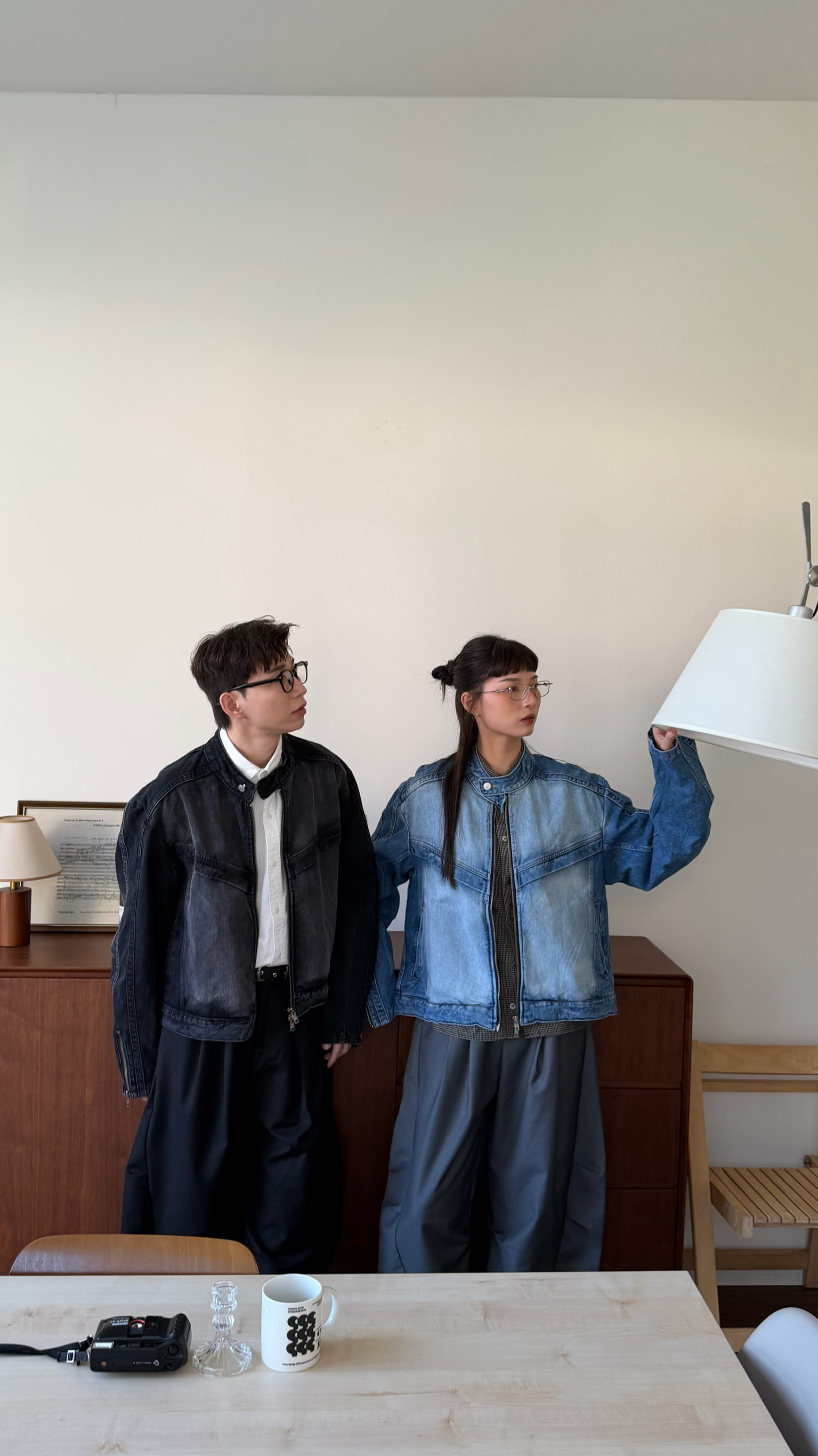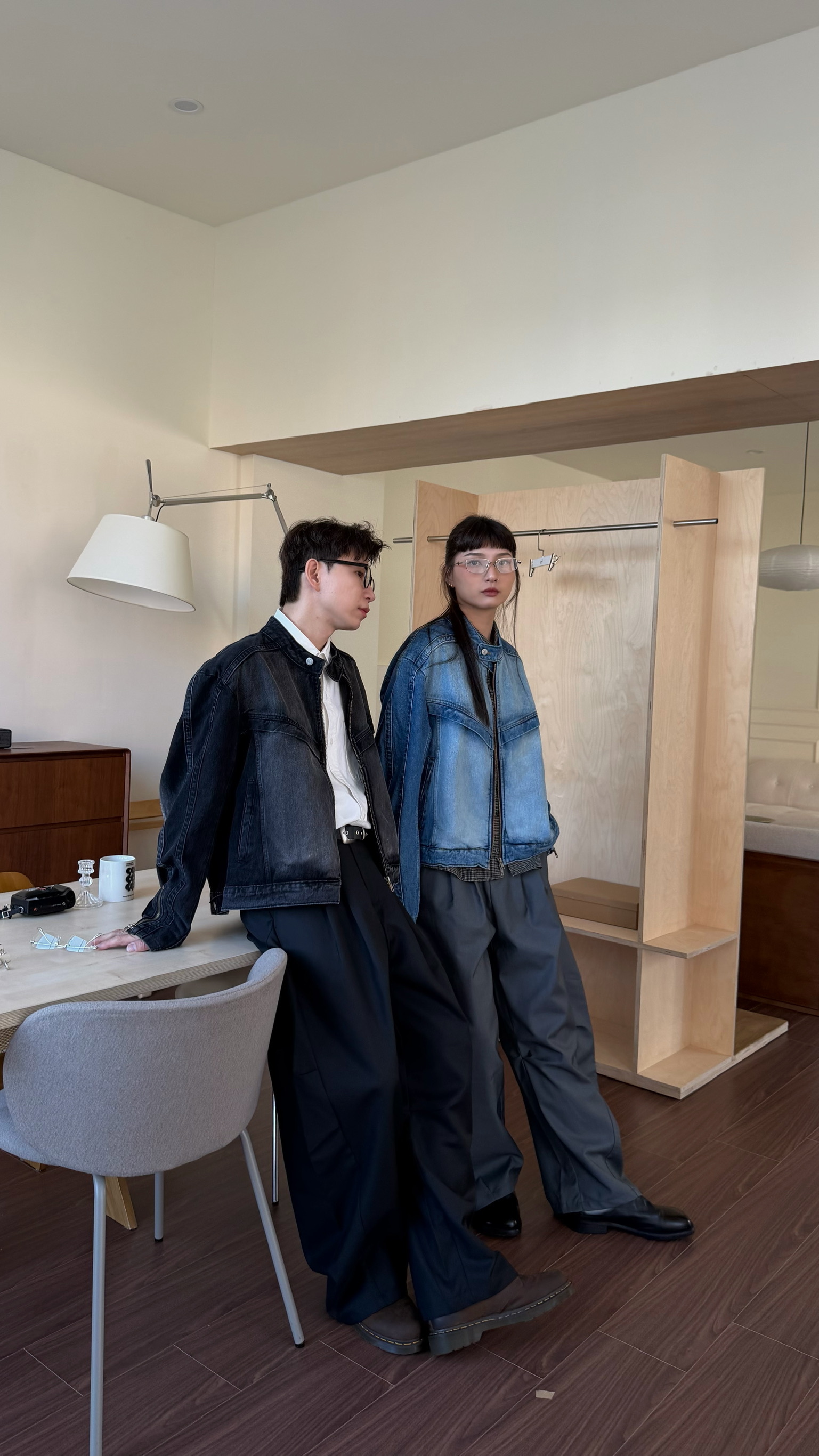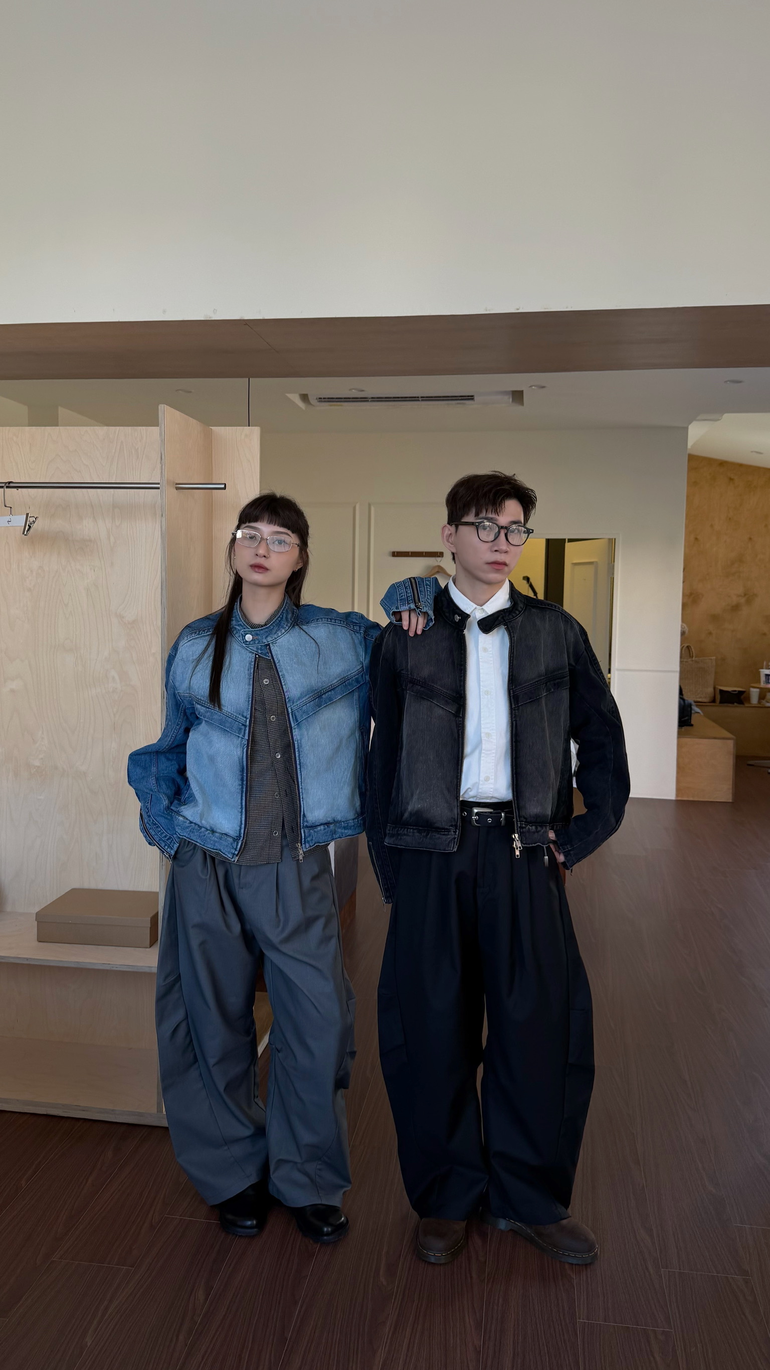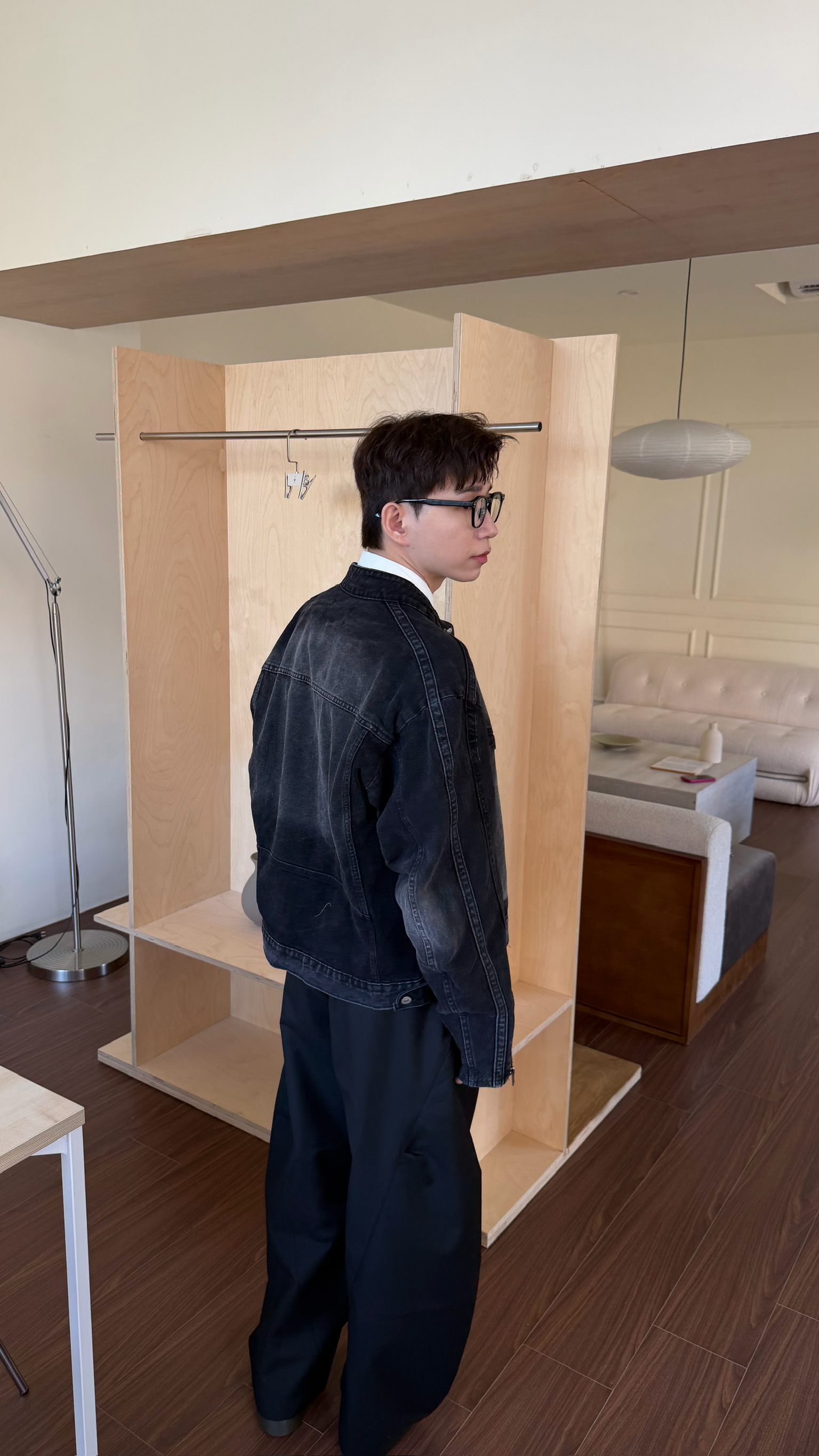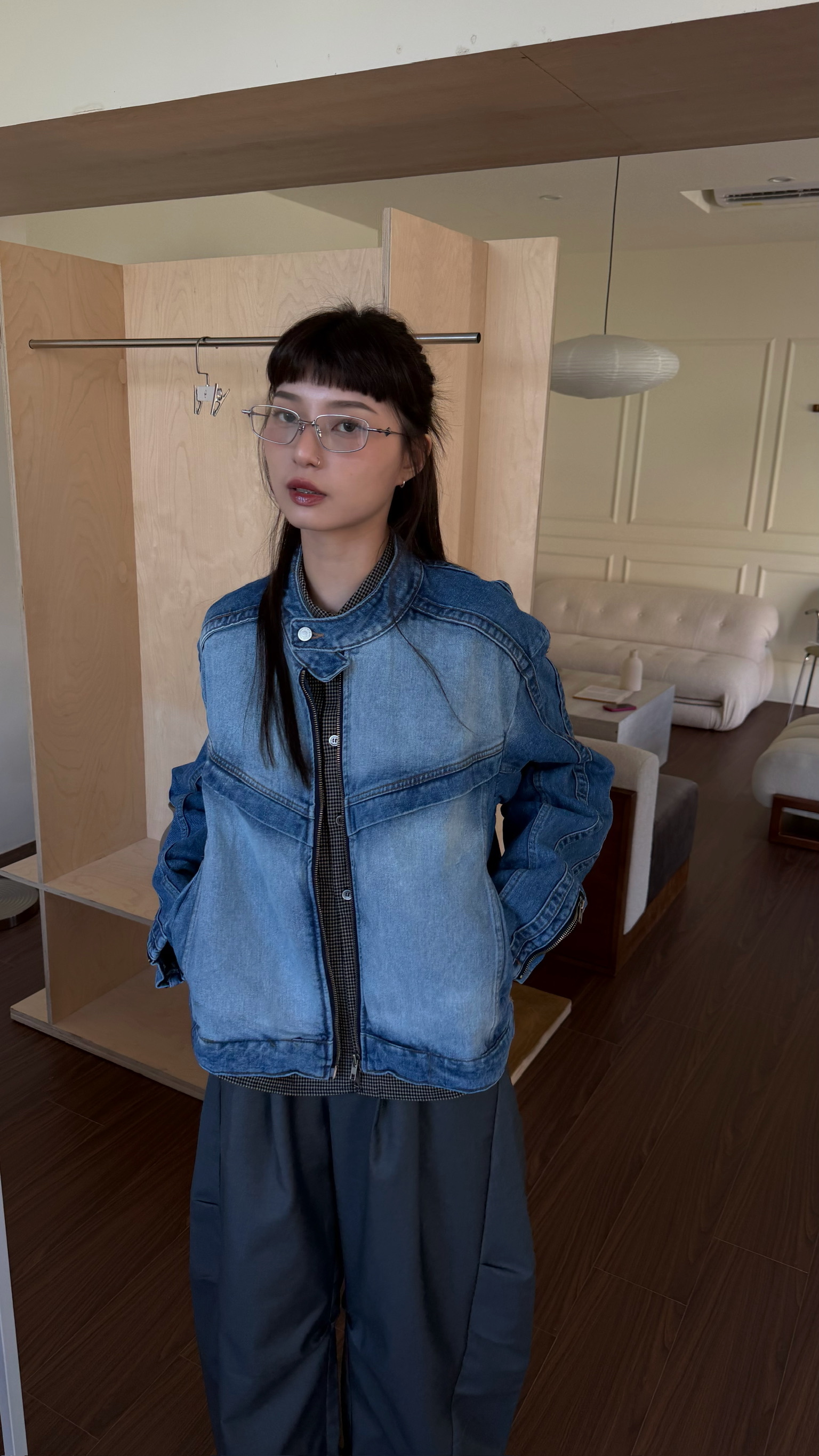 立領刷白牛仔夾克