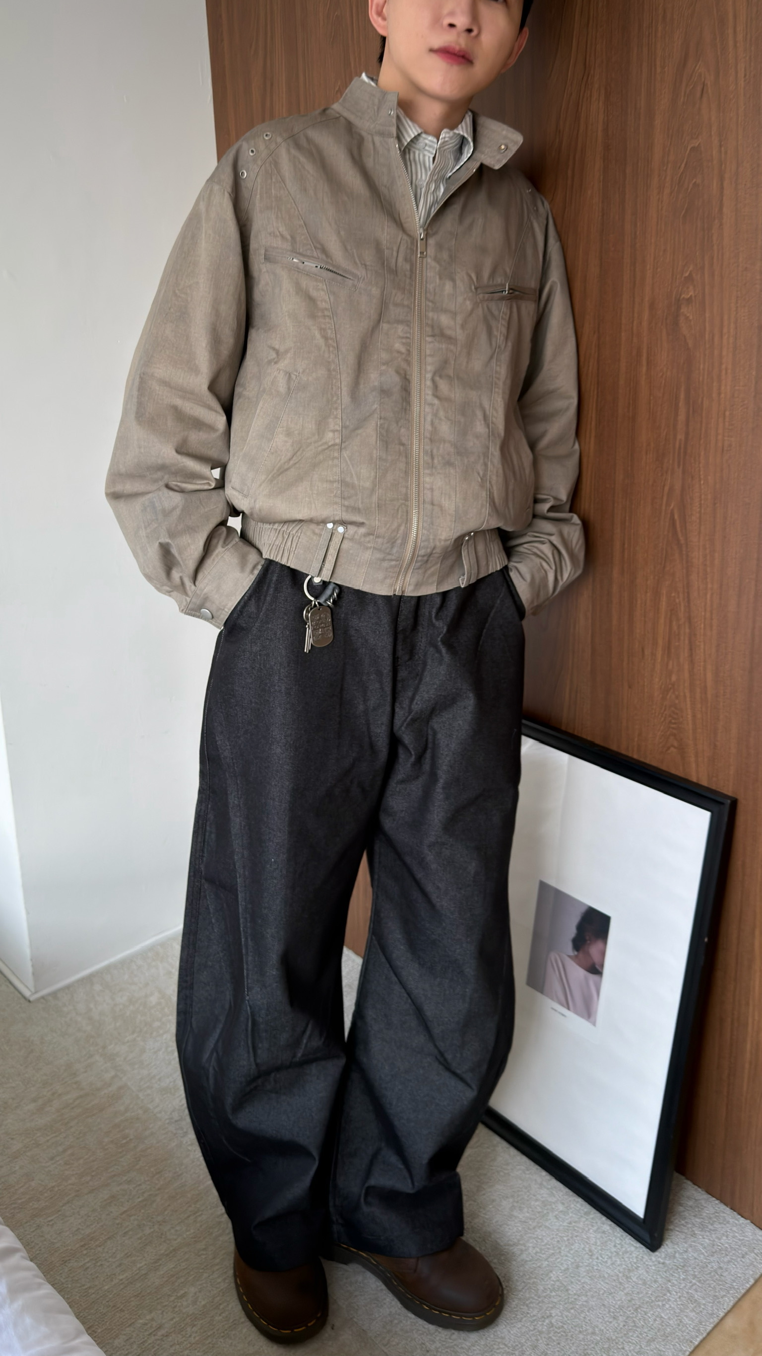 側邊以及背面的抓皺,因丹寧材質